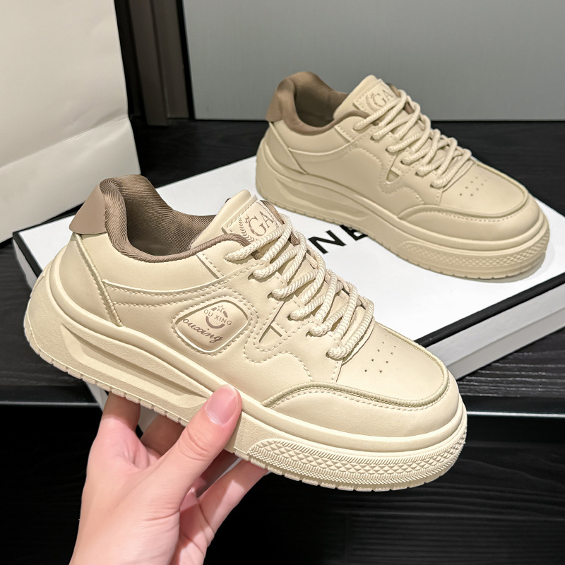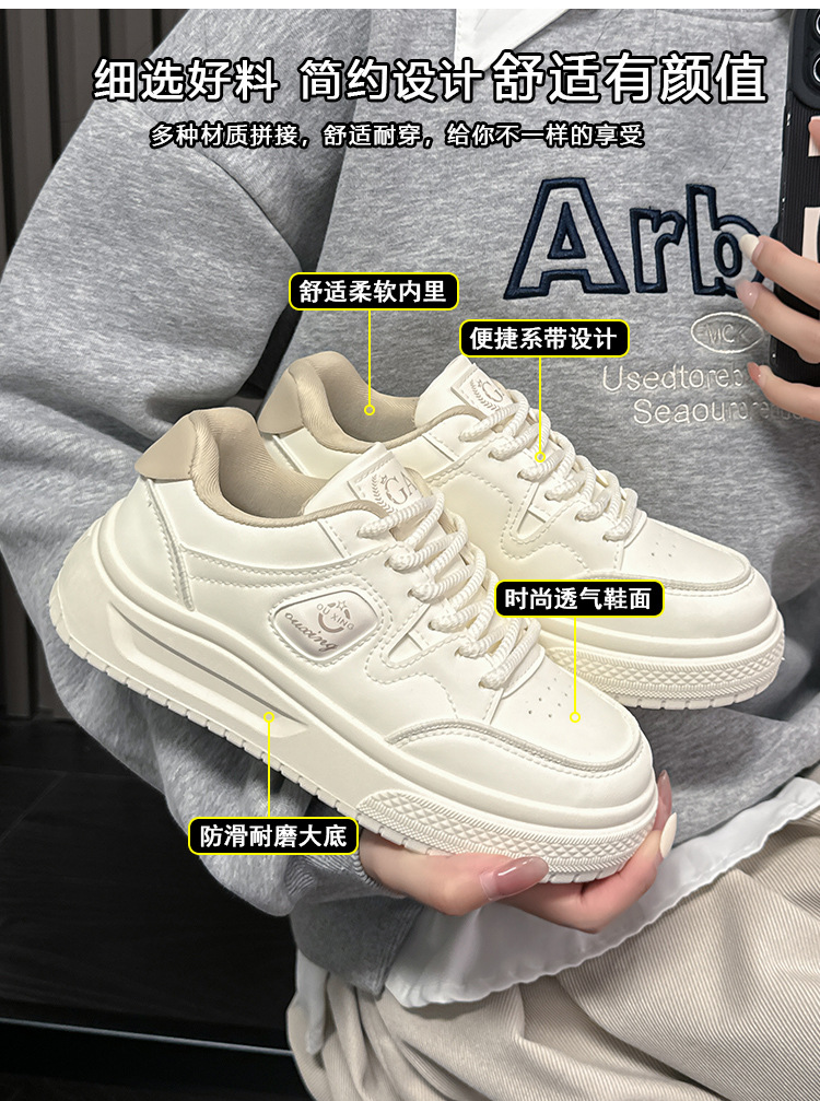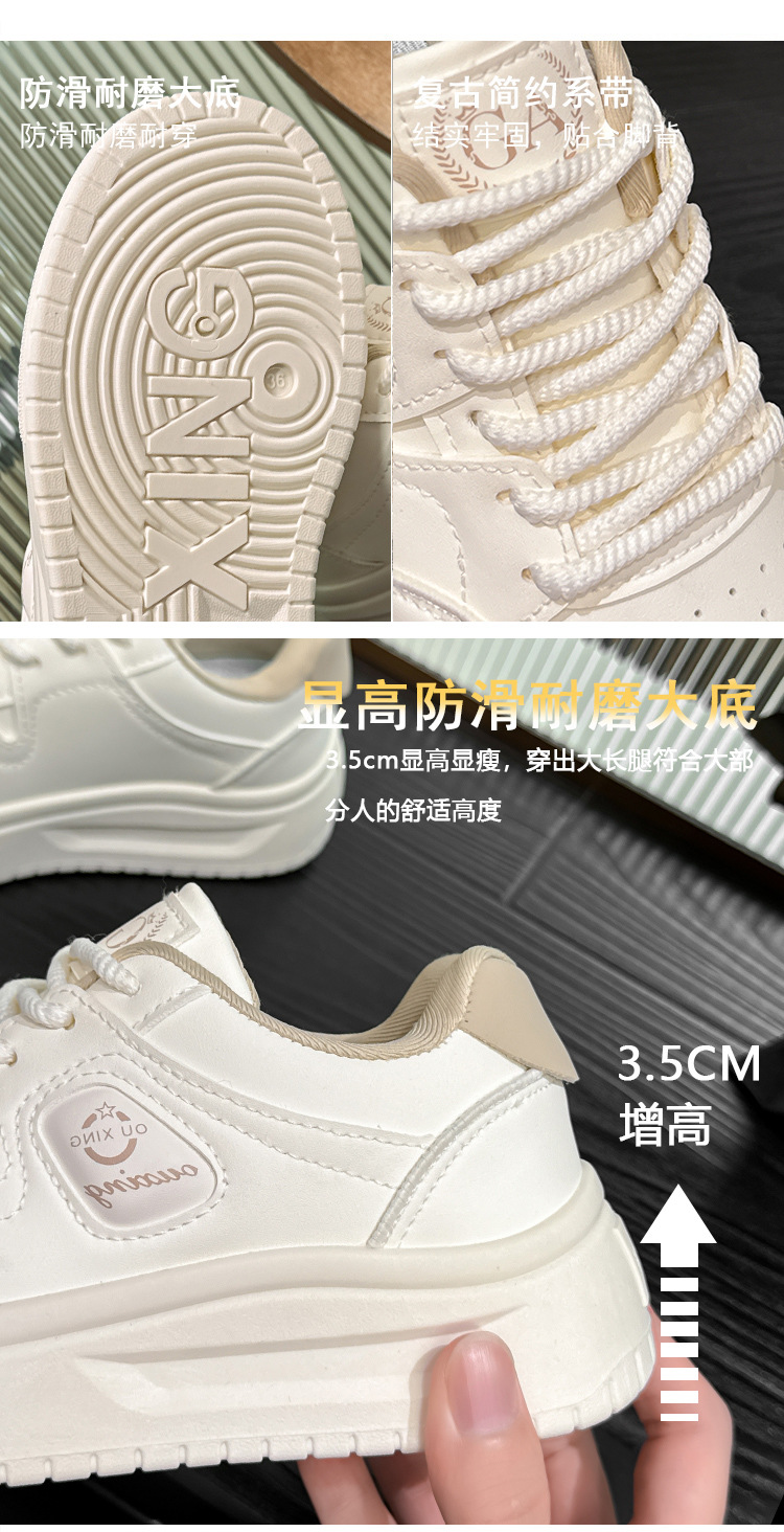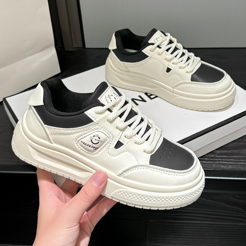 2024 봄과 가을 새로운 스포츠 캐주얼 화이트 슈즈 여성 Ins 한국식 두꺼운 가죽 올매치 싱글 레이어 슈즈 패셔너블 스니커즈