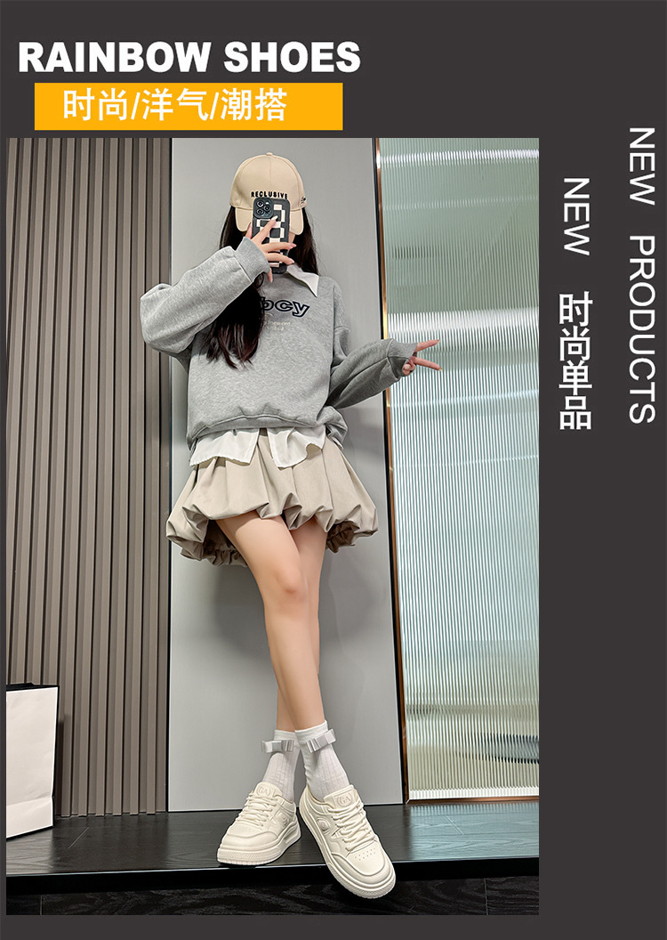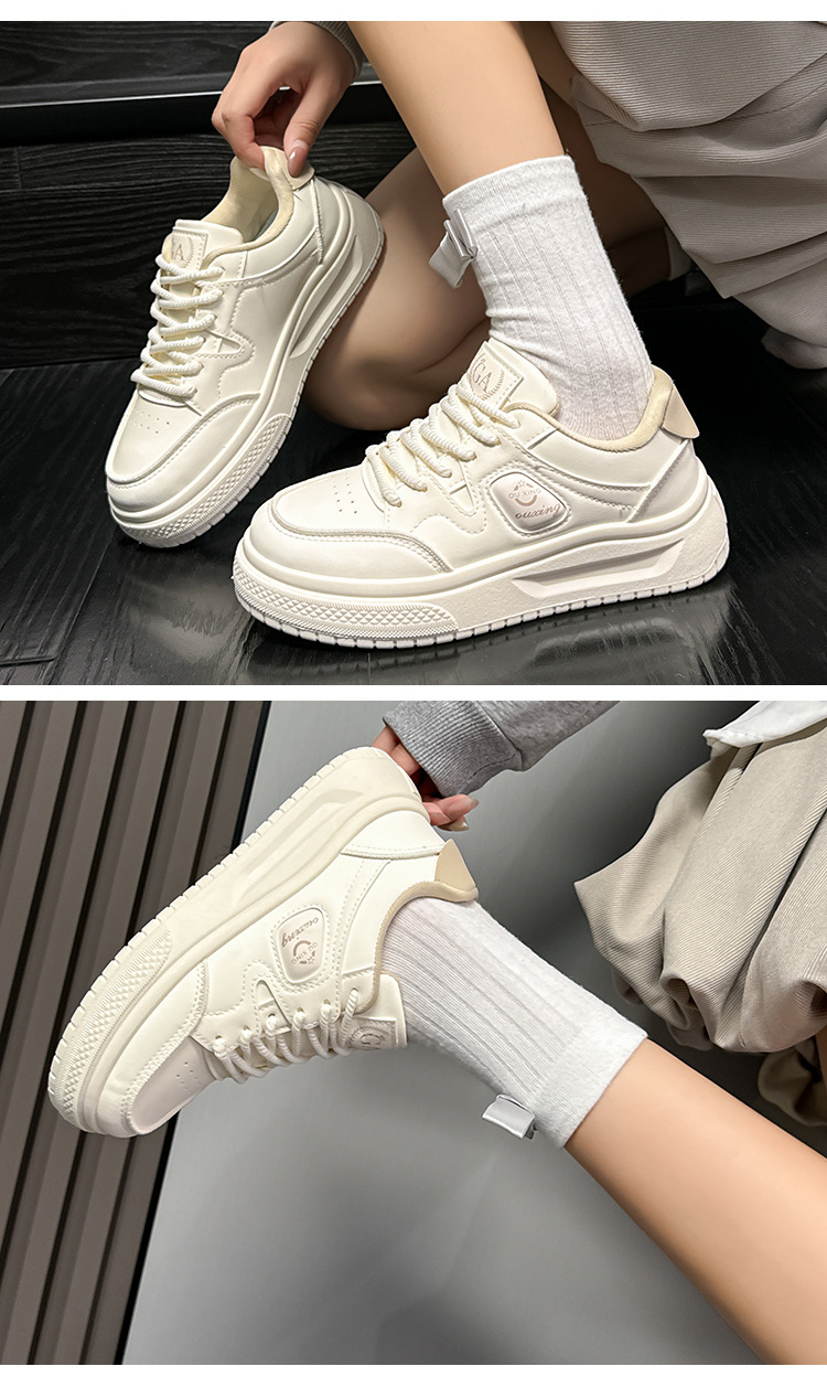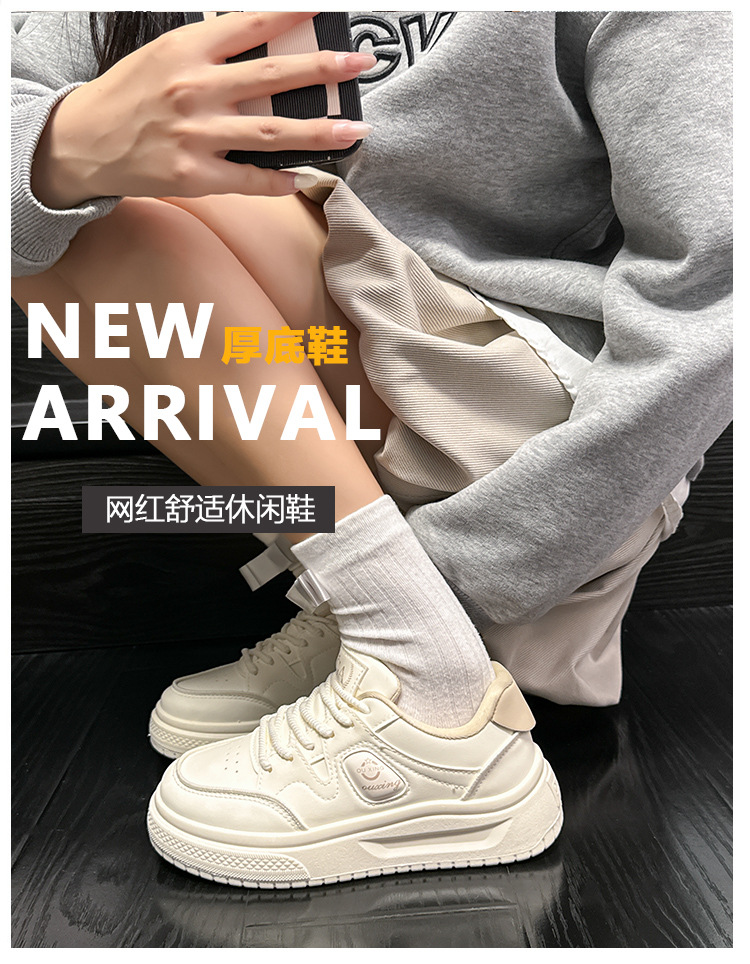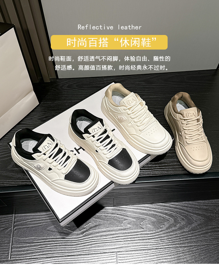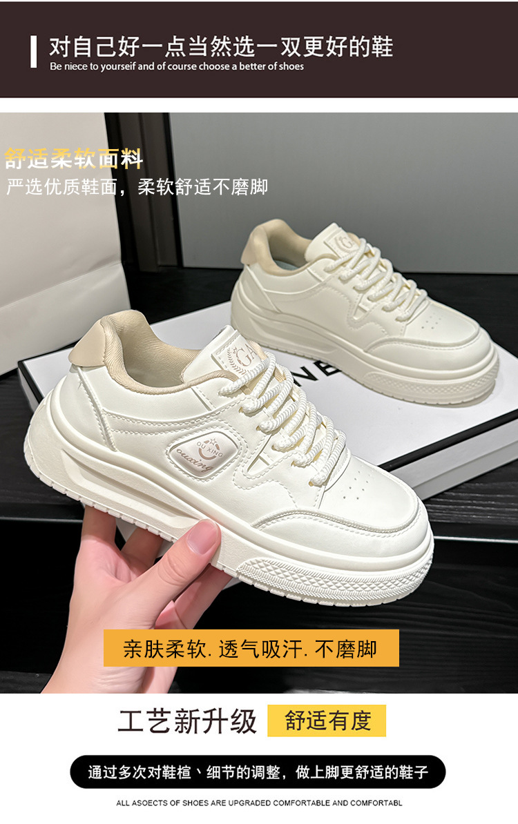 2024 봄과 가을 새로운 스포츠 캐주얼 화이트 슈즈 여성 Ins 한국식 두꺼운 가죽 올매치 싱글 레이어 슈즈 패셔너블 스니커즈