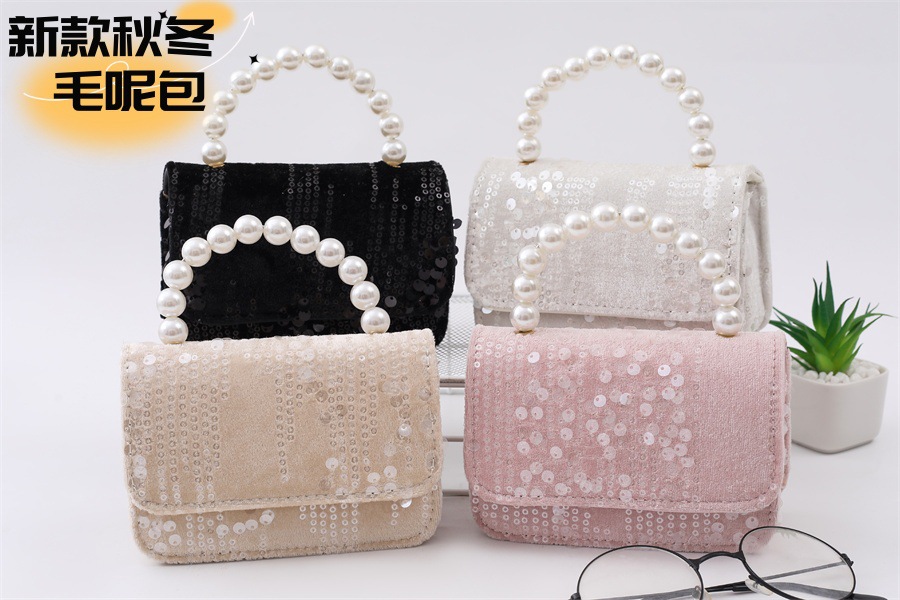 어린이 새로운 가을과 겨울 모직 진주 작은 가방 패션 샤넬 스타일 변경 핸드백 크로스 바디 숄더 체인 백스토어 가기
