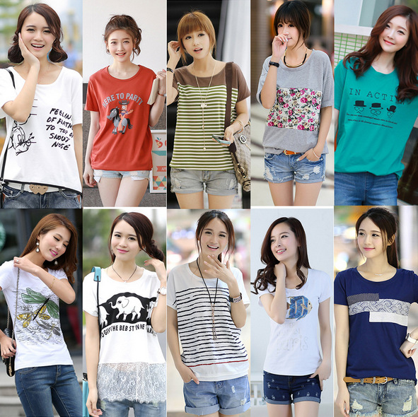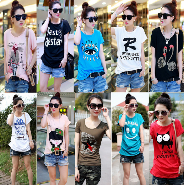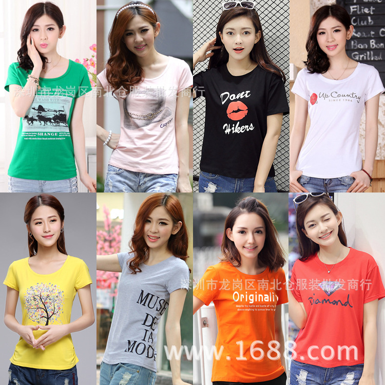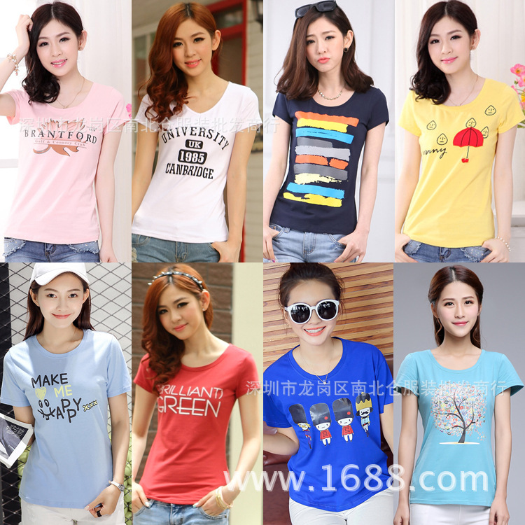 1688 런 장후 실속 옷 5 위안 여성 반팔 바닥 셔츠 9.9 위안 저렴한 도매