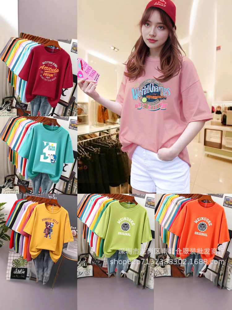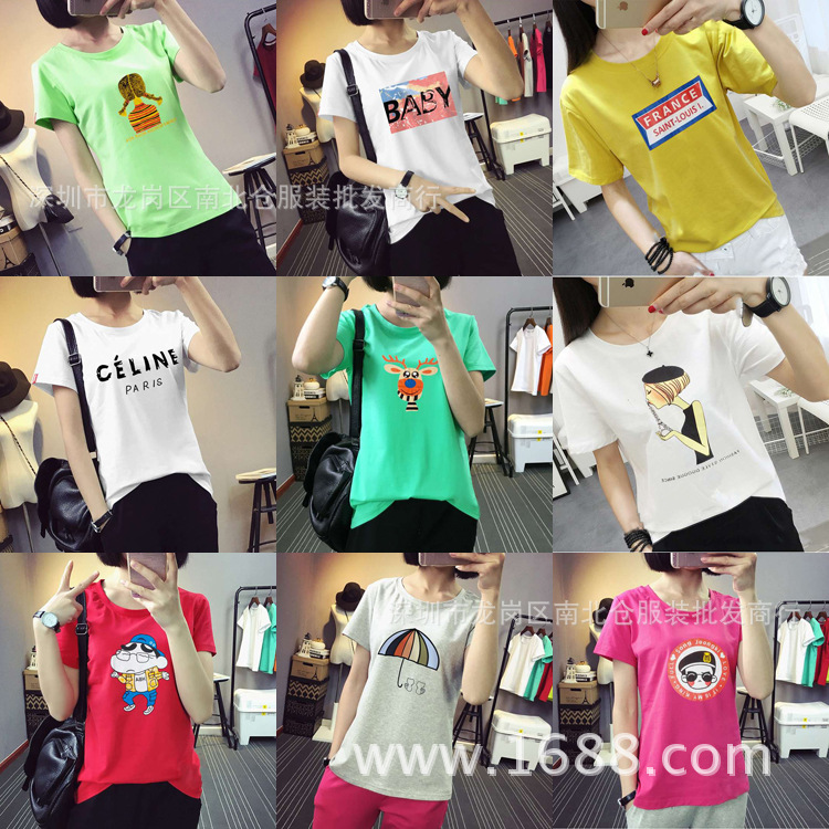 1688 런 장후 실속 옷 5 위안 여성 반팔 바닥 셔츠 9.9 위안 저렴한 도매스토어 가기