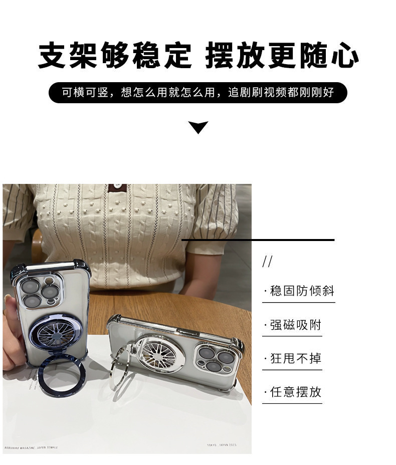 • [쿨 블랙] 투명한 전기도금 네 모서리 낙하 방지 + 회전 자이로 브래킷