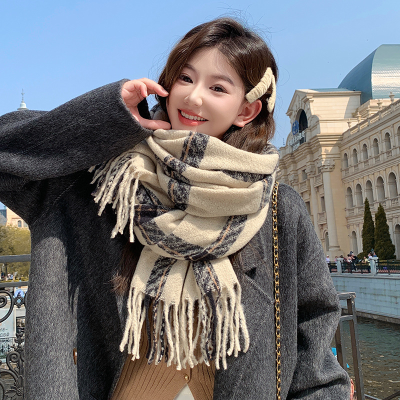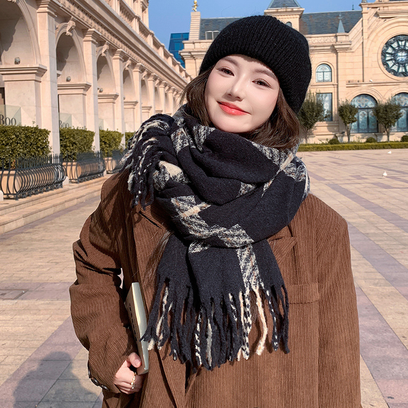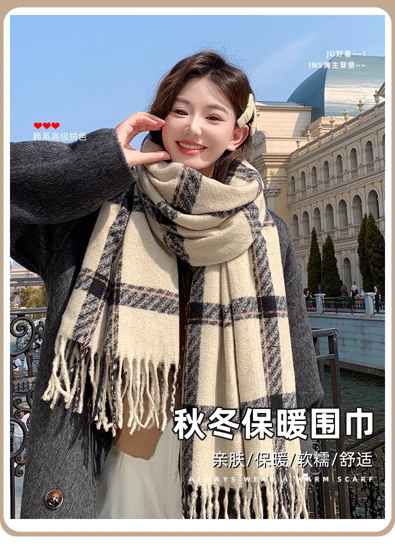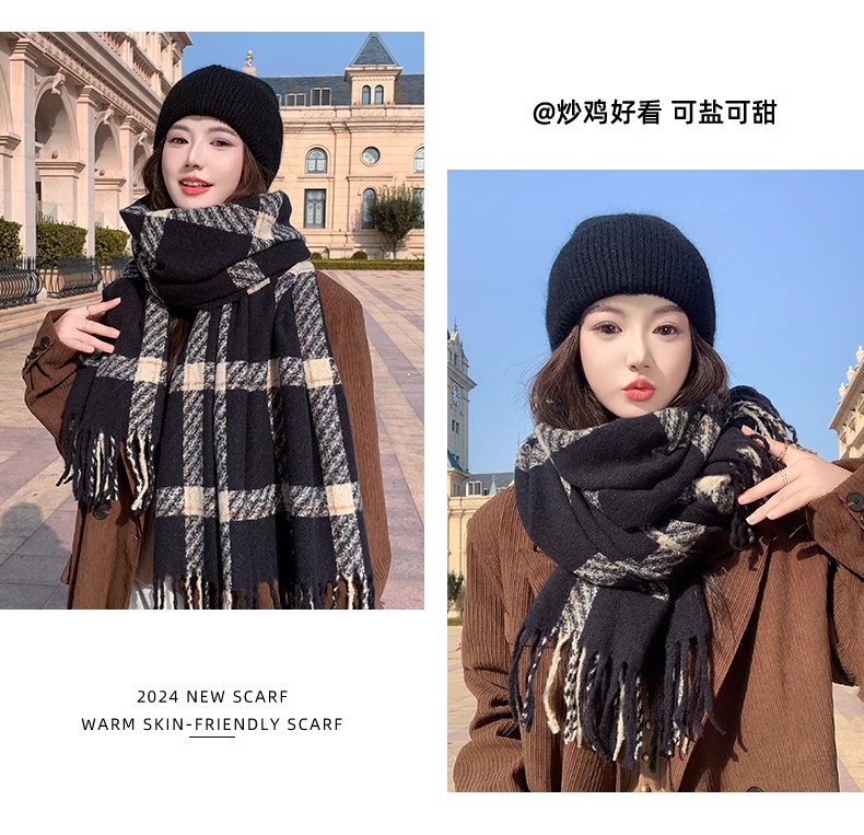 스카프 여자 겨울 2024 새로운 한국 패션 올매치 두꺼운 따뜻한 듀얼 사용 목도리 캐시미어 커플 스카프스토어 가기