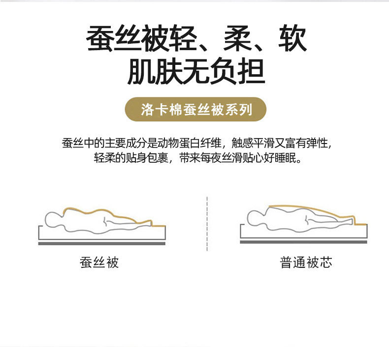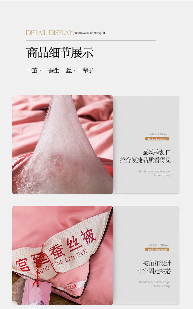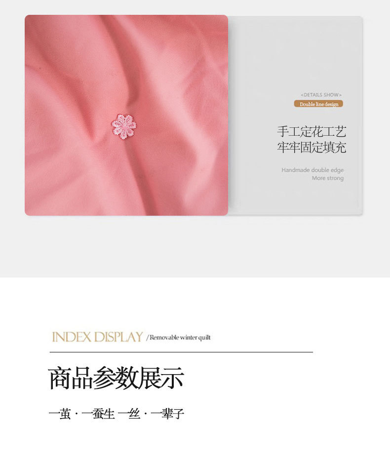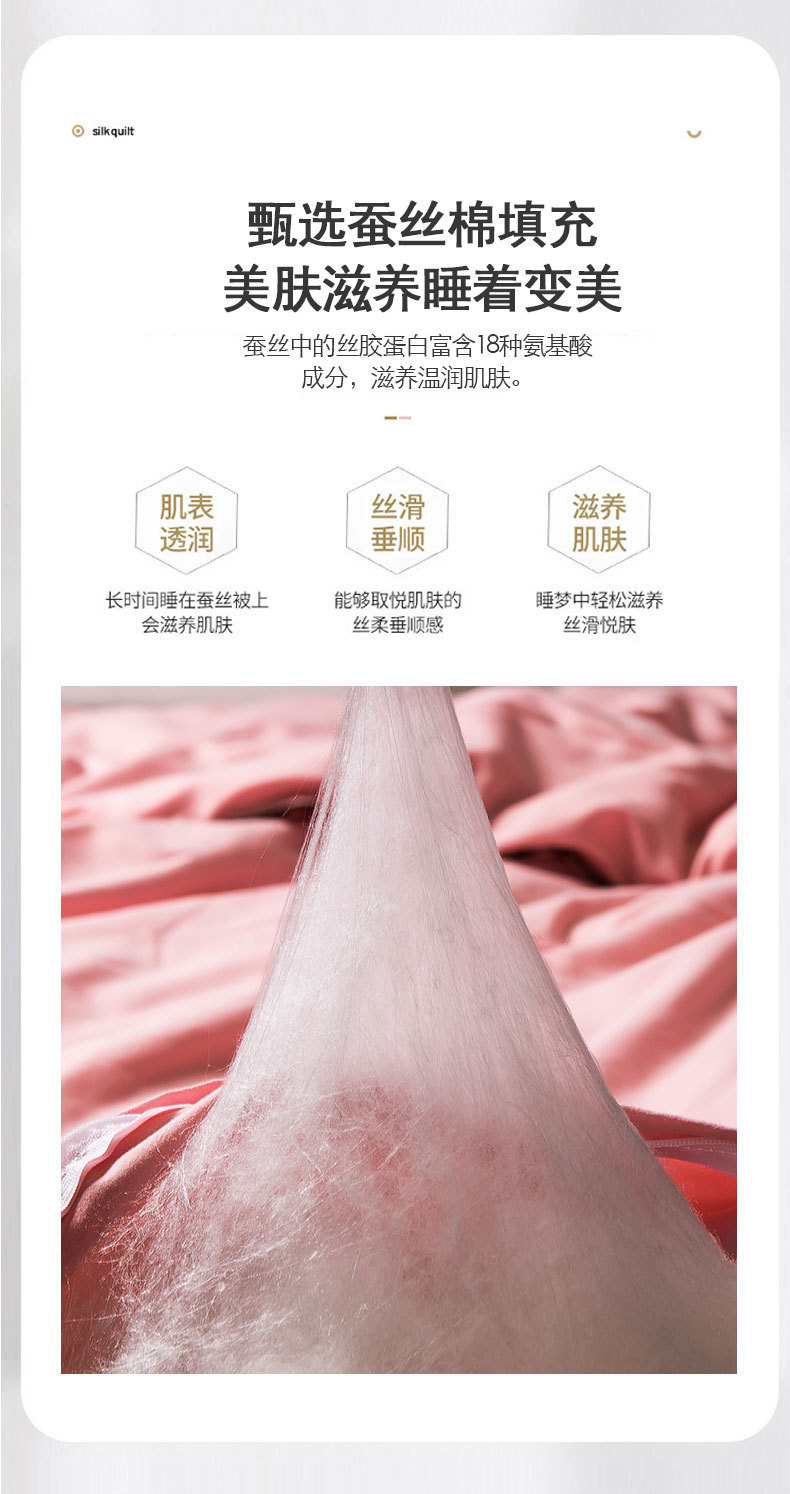 2. 填充物:60cm检测口三层蚕丝+整张羽丝棉【整体手感效果都和纯蚕丝被一模一样】