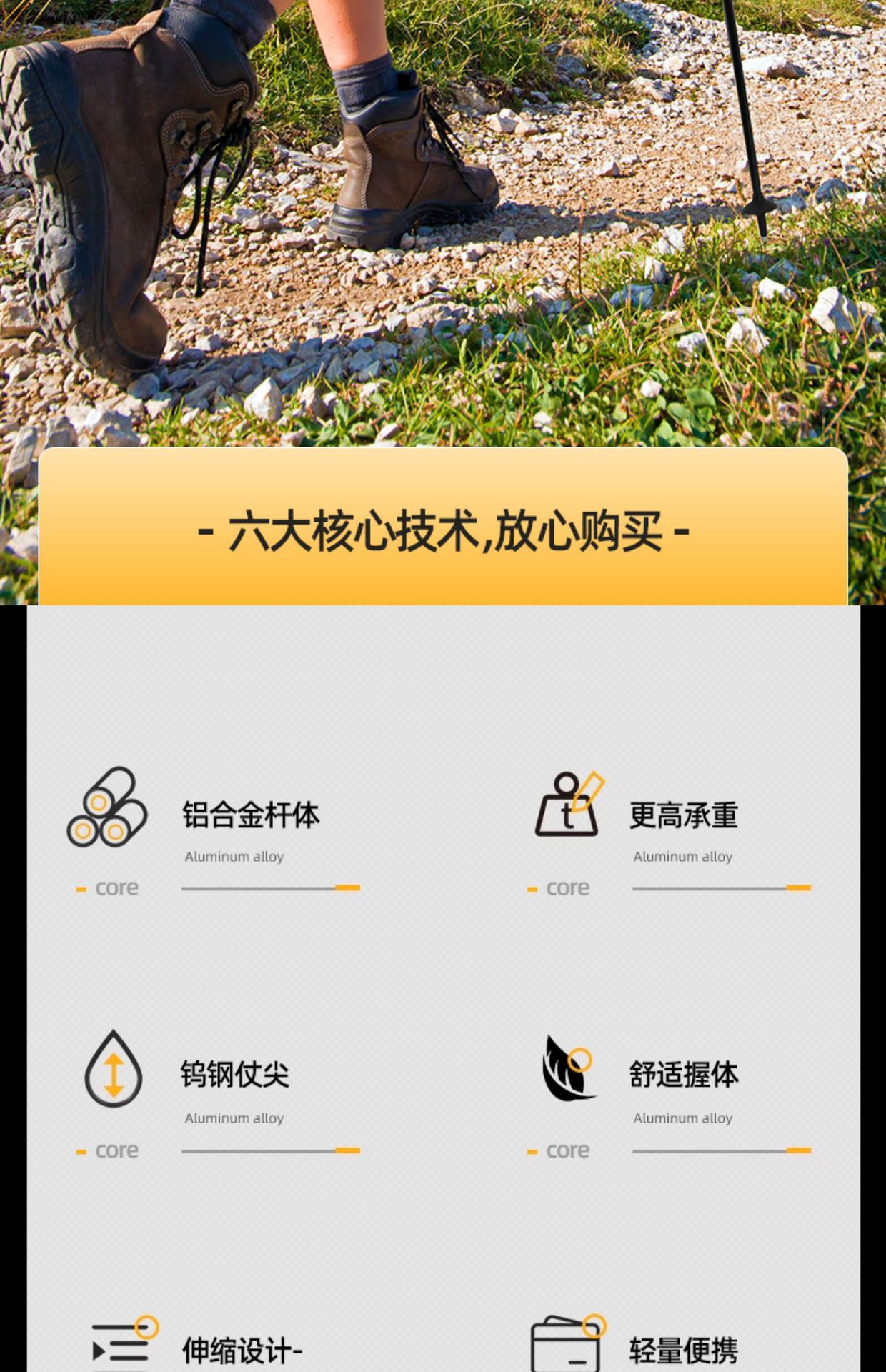 • 4단 텔레스코픽 50-110CM [스프링 충격 흡수] T 핸들 블랙