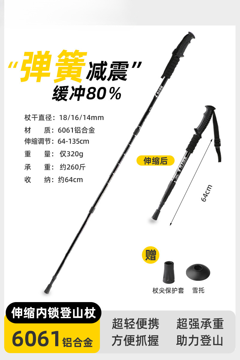 • 3단 텔레스코픽 65-135CM [스프링 충격 흡수] T 핸들 블랙