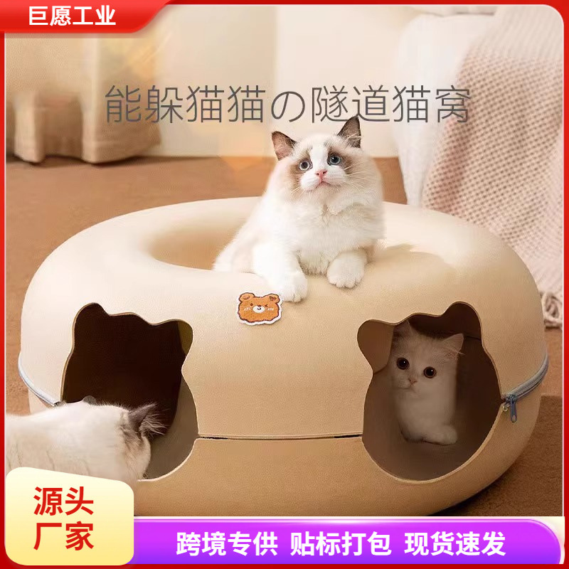 도넛 고양이 둥지 사계절 유니버설 고양이 터널 장난감 타이어 겨울 따뜻한 폐쇄 안전 사육장스토어 가기
