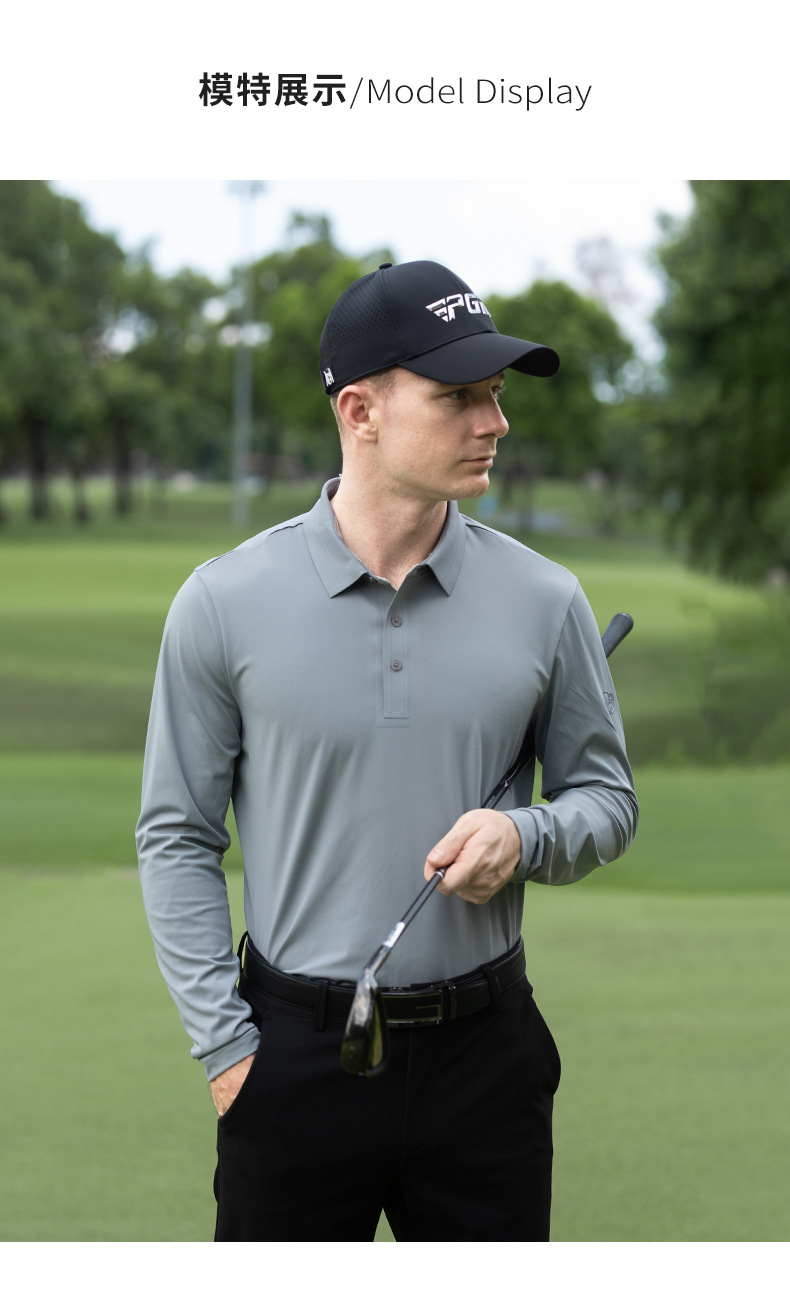 PGM 골프 의류 남자 긴팔 티셔츠 가을 스포츠 저지 남자 최고 원활한 옷깃 폴로 셔츠스토어 가기