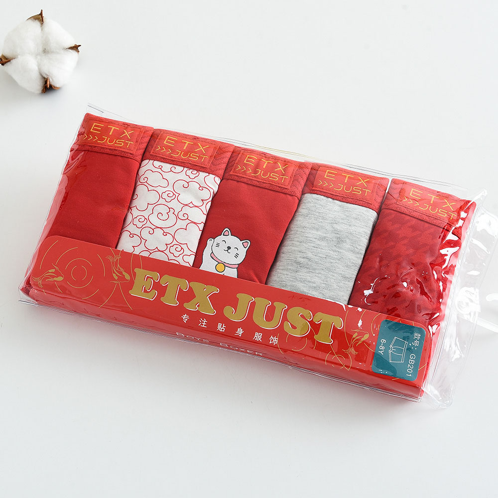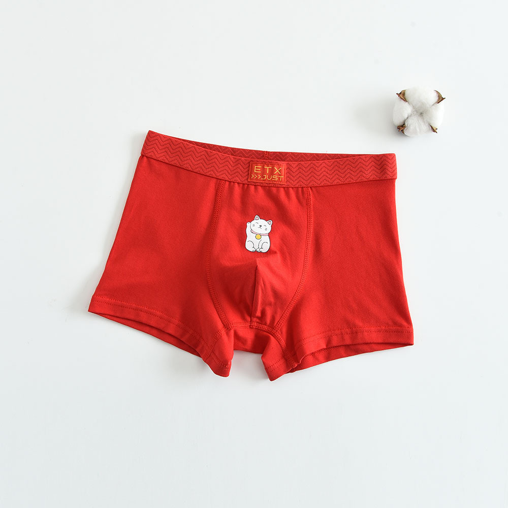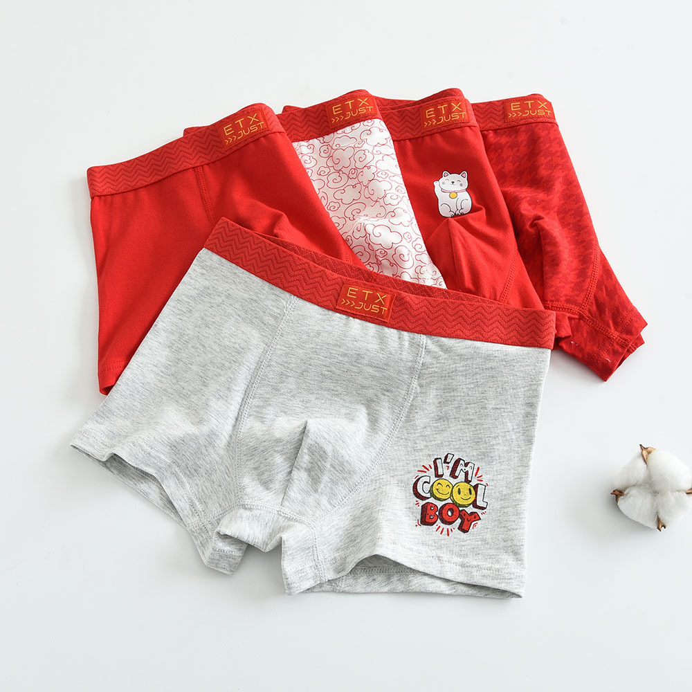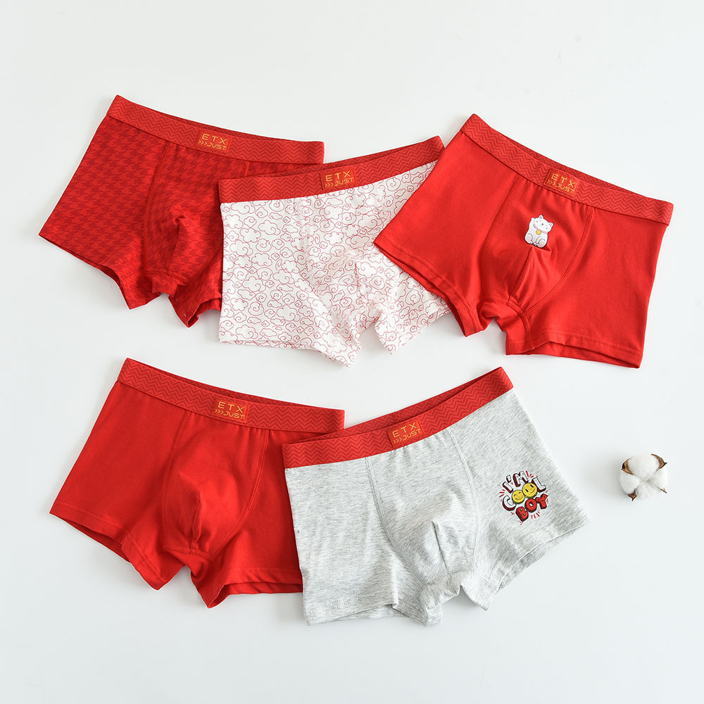 ETX 어린이 속옷 코튼 보이즈 브닝 니언 복서 속옷 클래스 새해 큰 빨간 바지 큰 어린이 복서 반바지