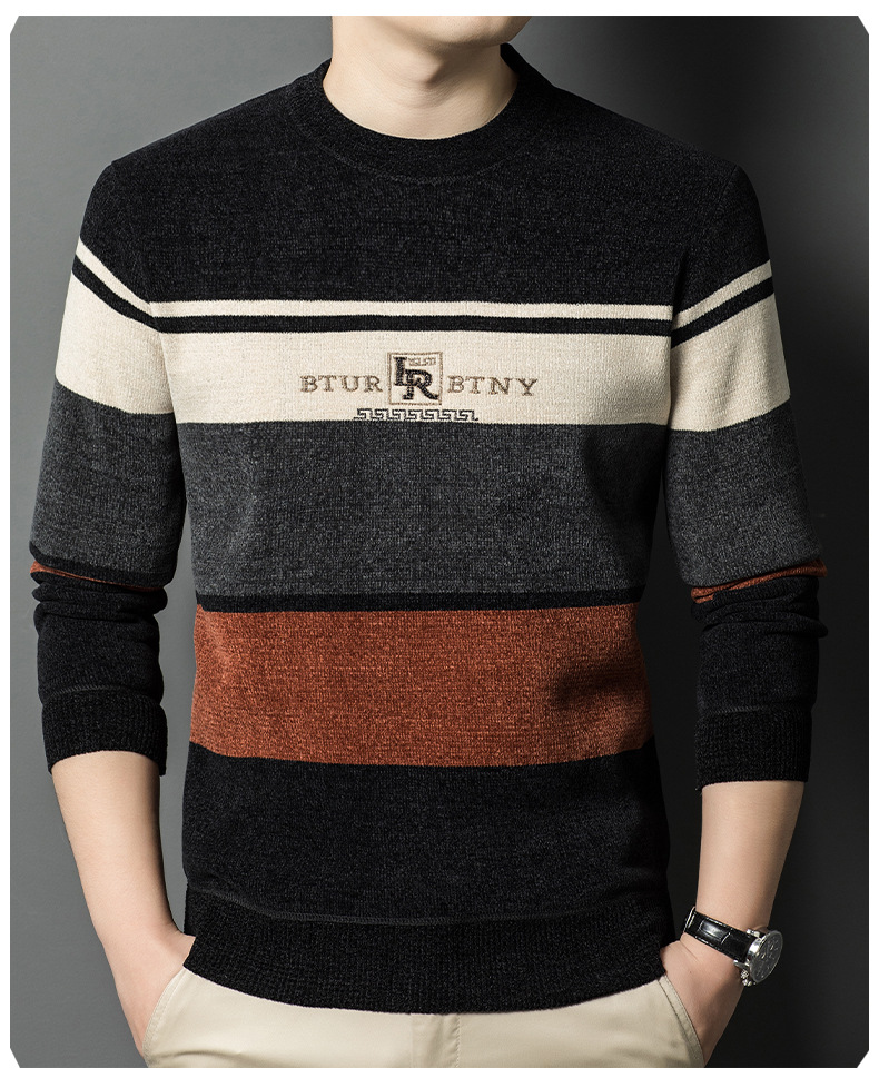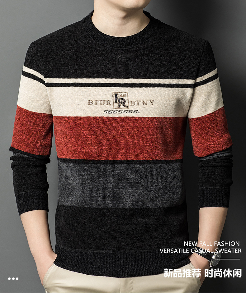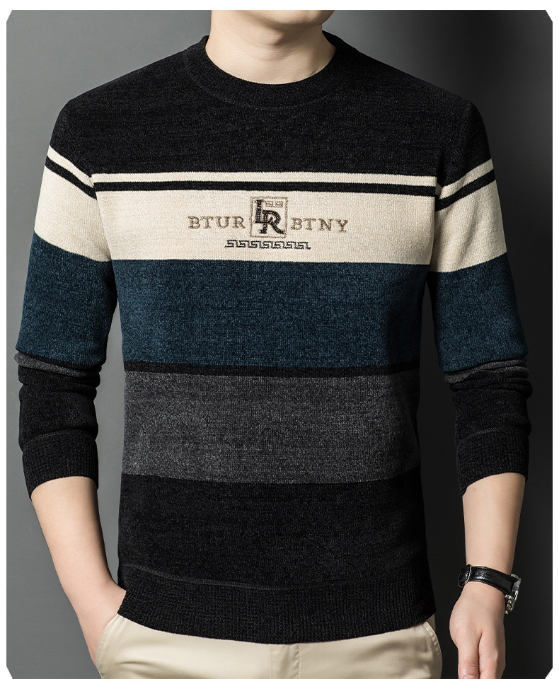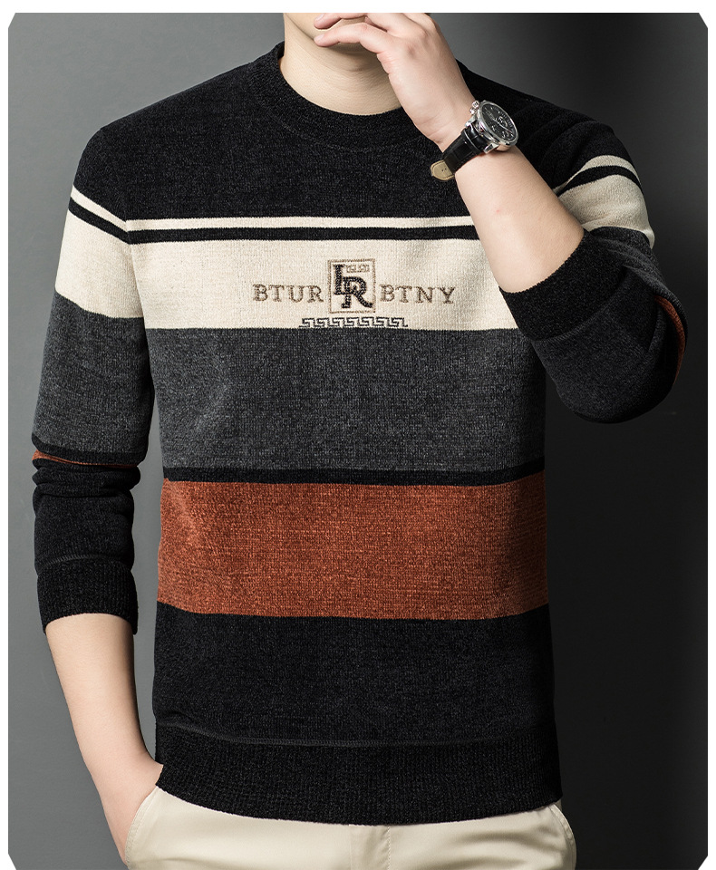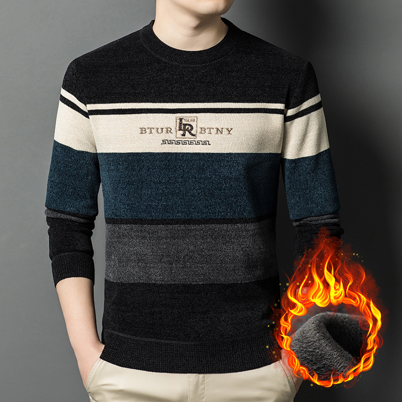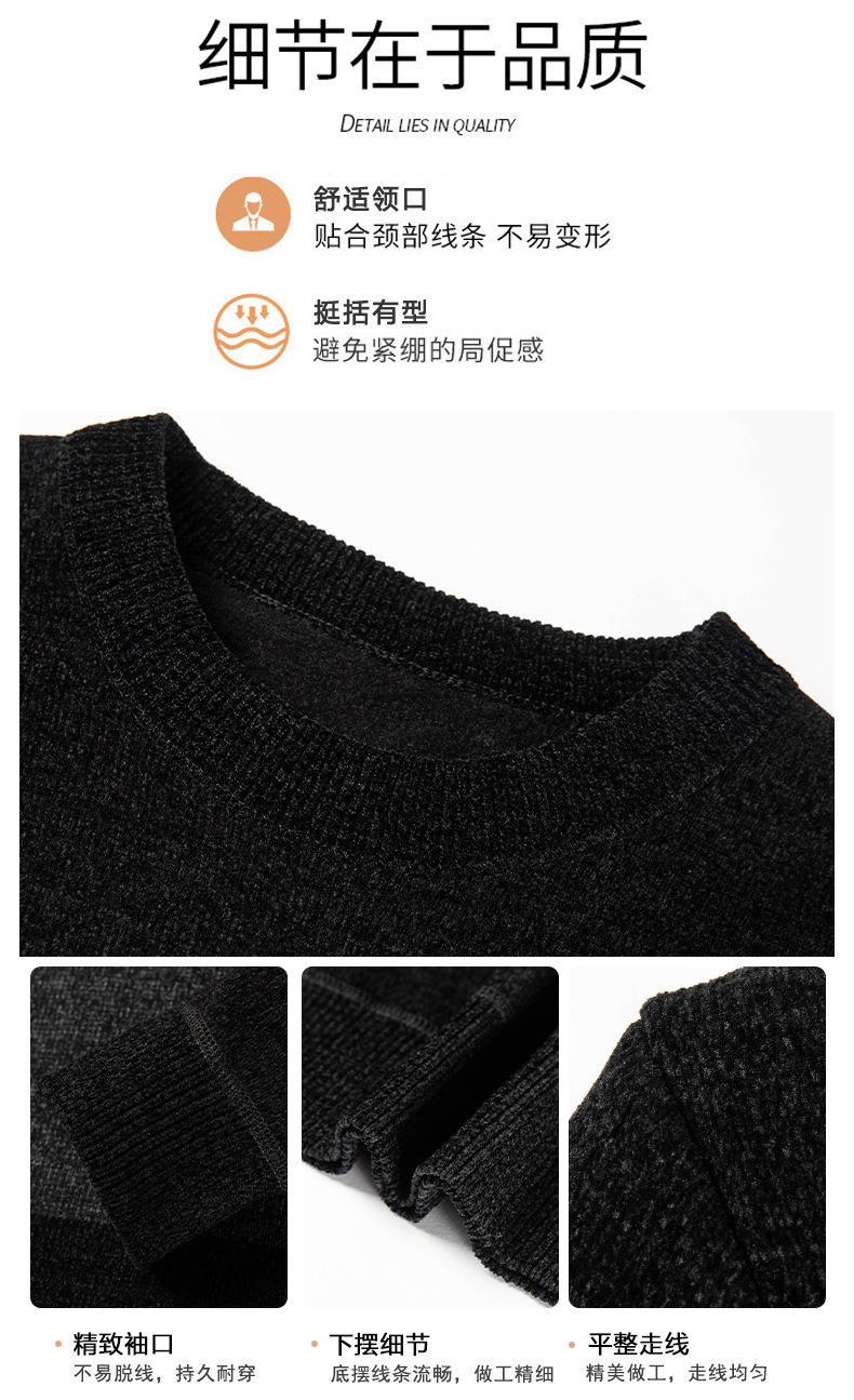 겨울 뉴 체닐 스웨터 남자 크루 넥 기모 두꺼운 중년 남성 따뜻한 니트베이스 셔츠