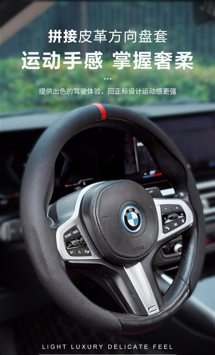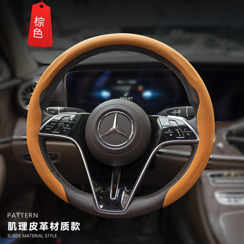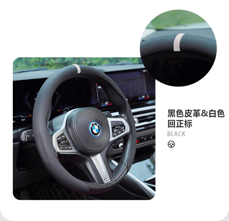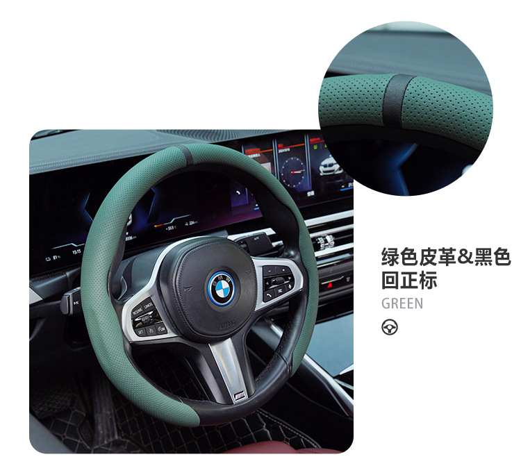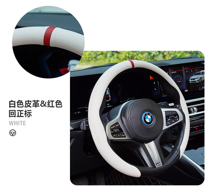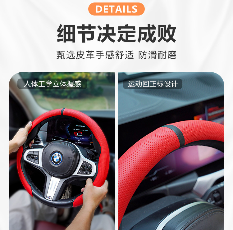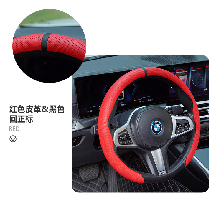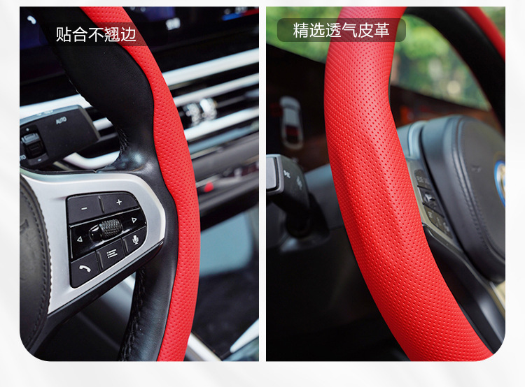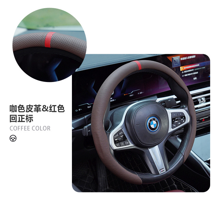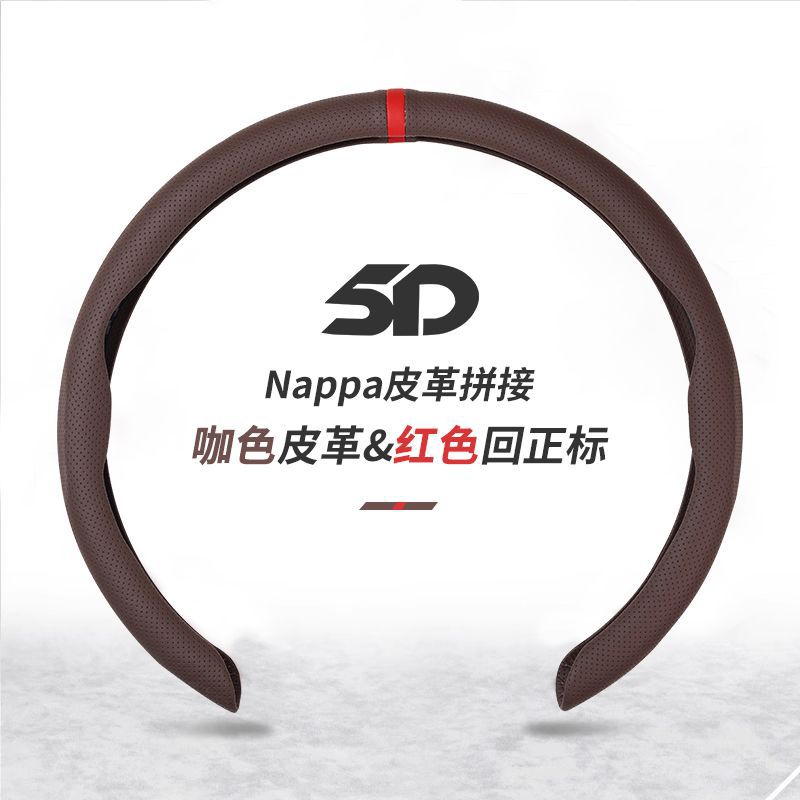 나파 가죽 스티어링 휠 커버 사계절 보편적 인 새로운 천공 미끄럼 방지 땀 흡수성 스포츠 카드 형 백 표준 핸들 커버