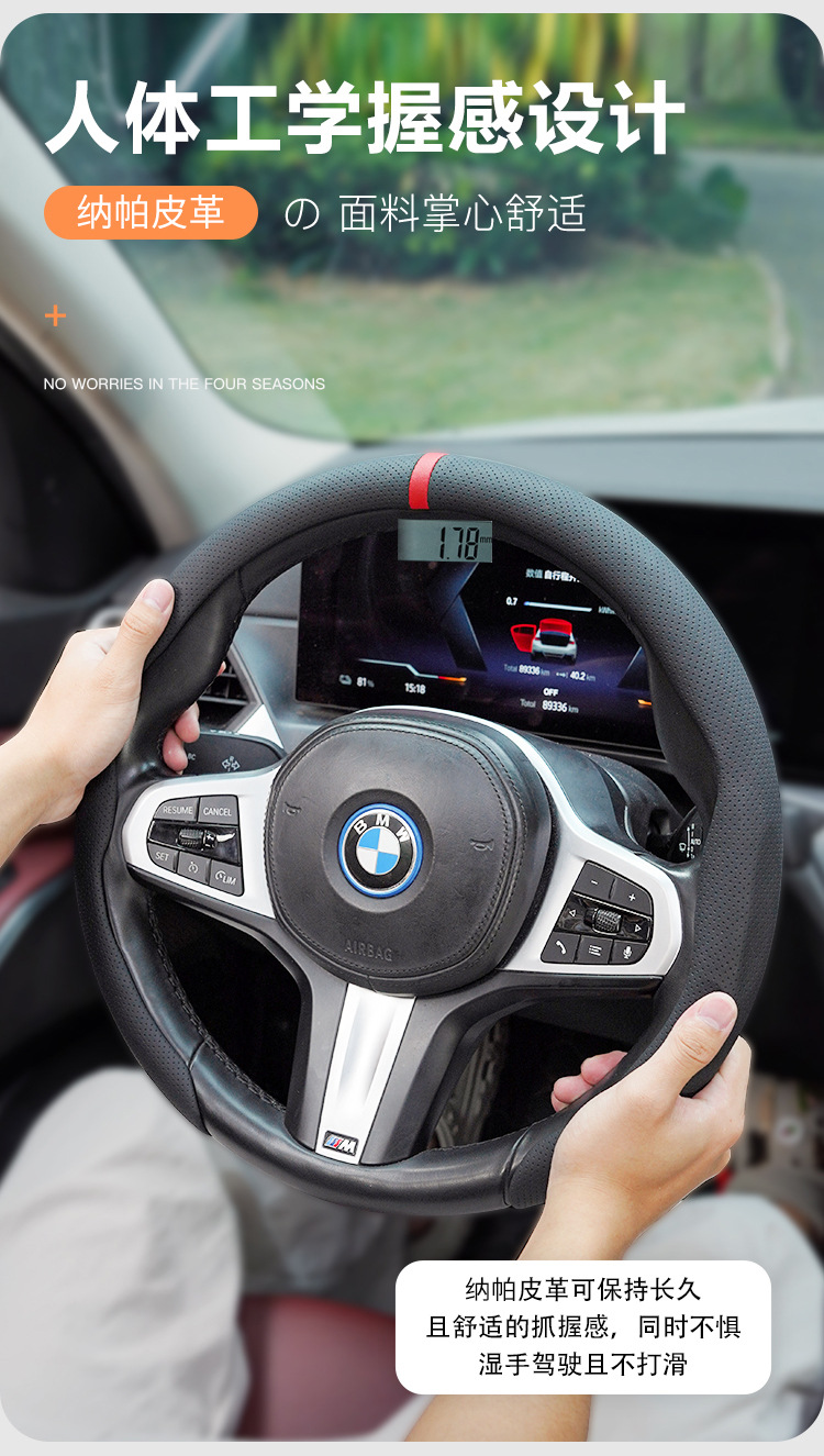 나파 가죽 스티어링 휠 커버 사계절 보편적 인 새로운 천공 미끄럼 방지 땀 흡수성 스포츠 카드 형 백 표준 핸들 커버스토어 가기