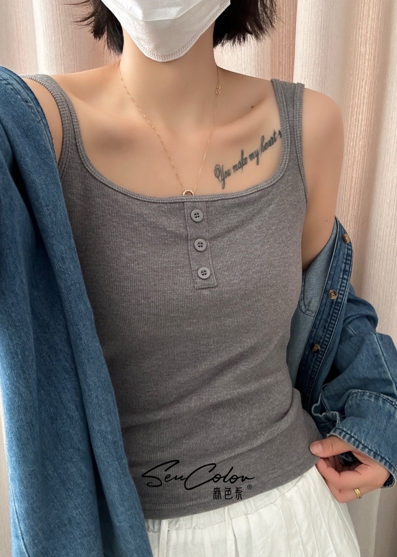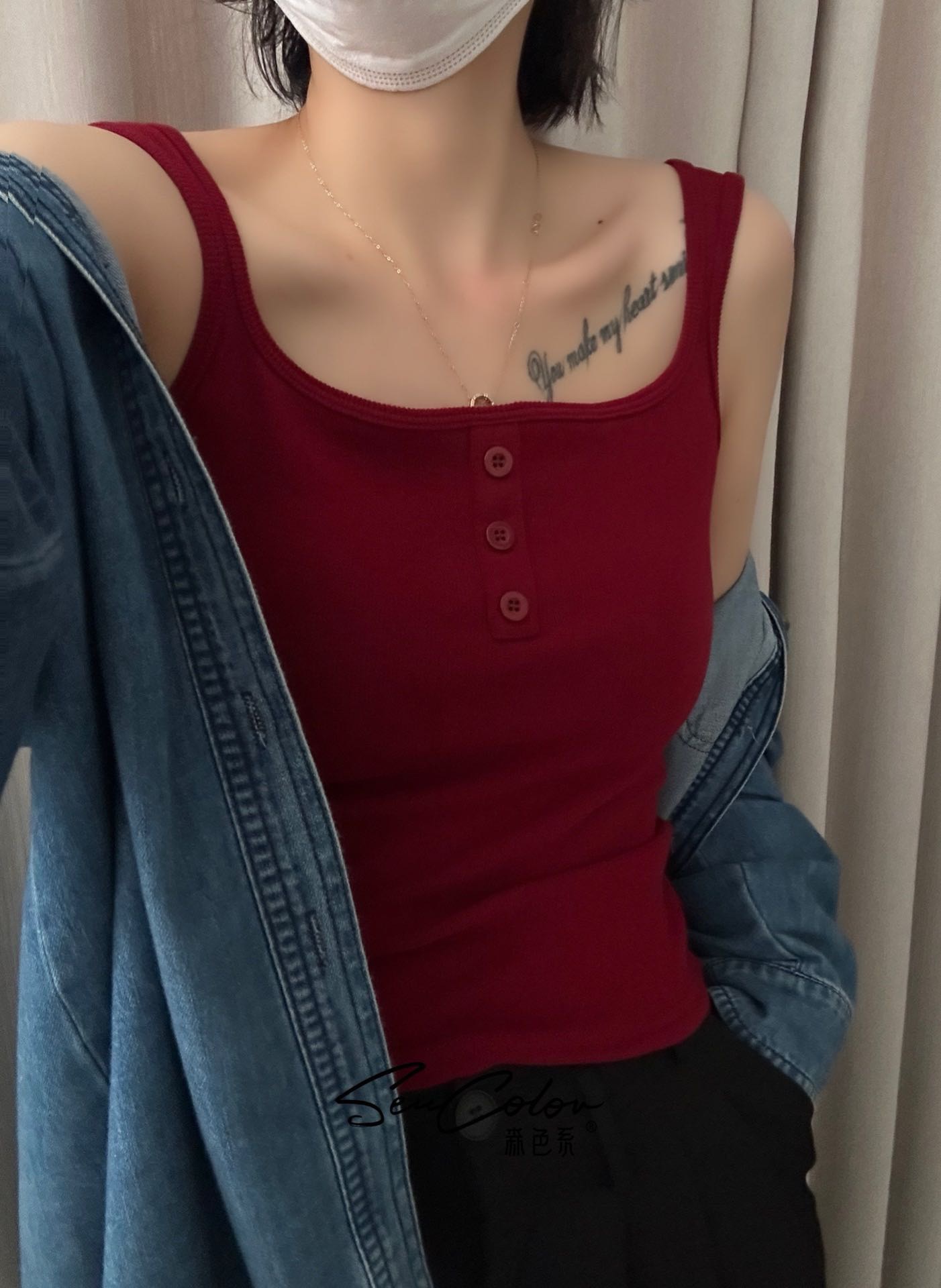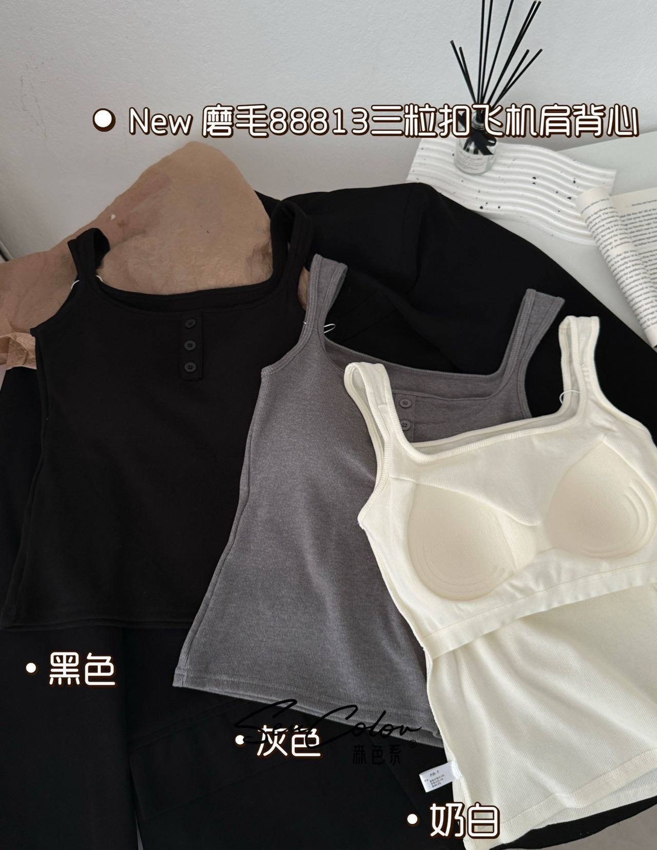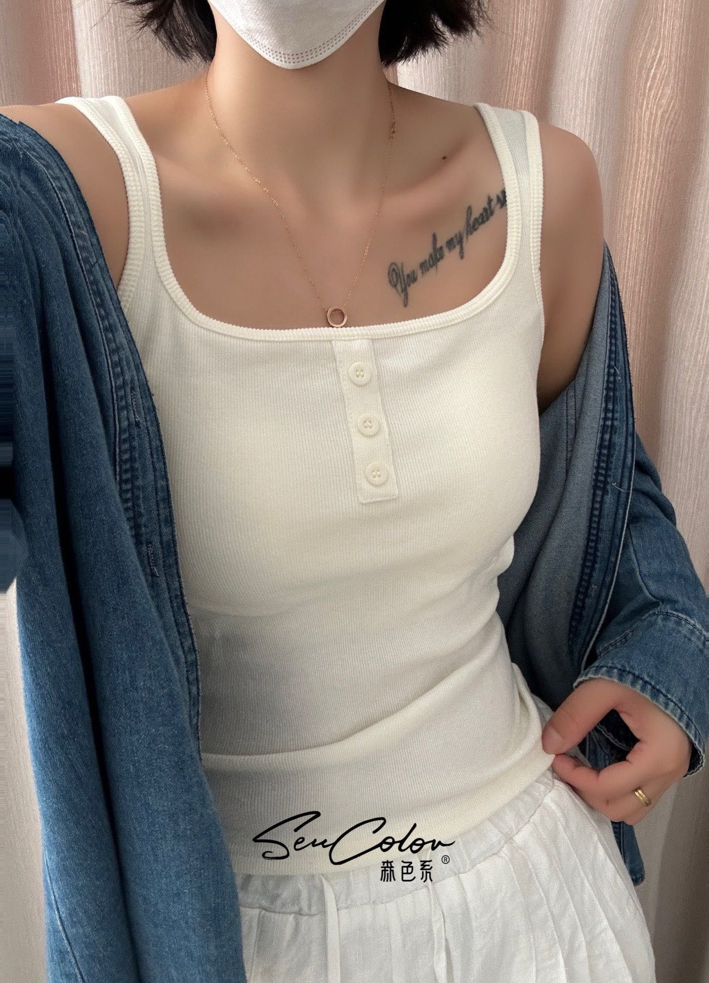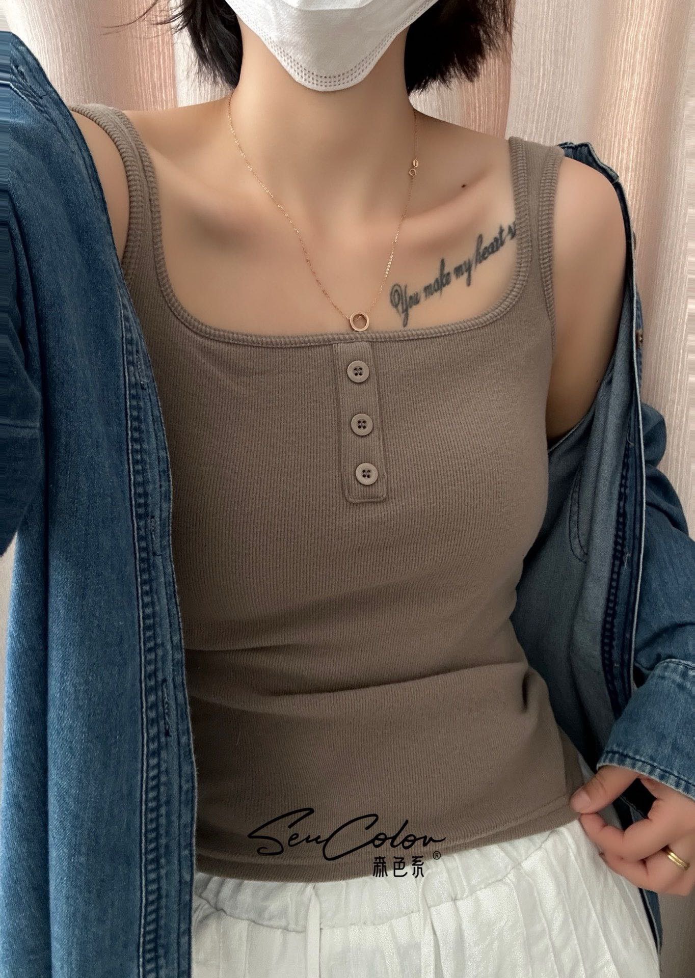 가을과 겨울 광장 칼라 샌딩 카미 솔 여성 벨트 가슴 패드 통합 고정 컵 외부 착용 내부 착용 따뜻한 기모 조끼스토어 가기