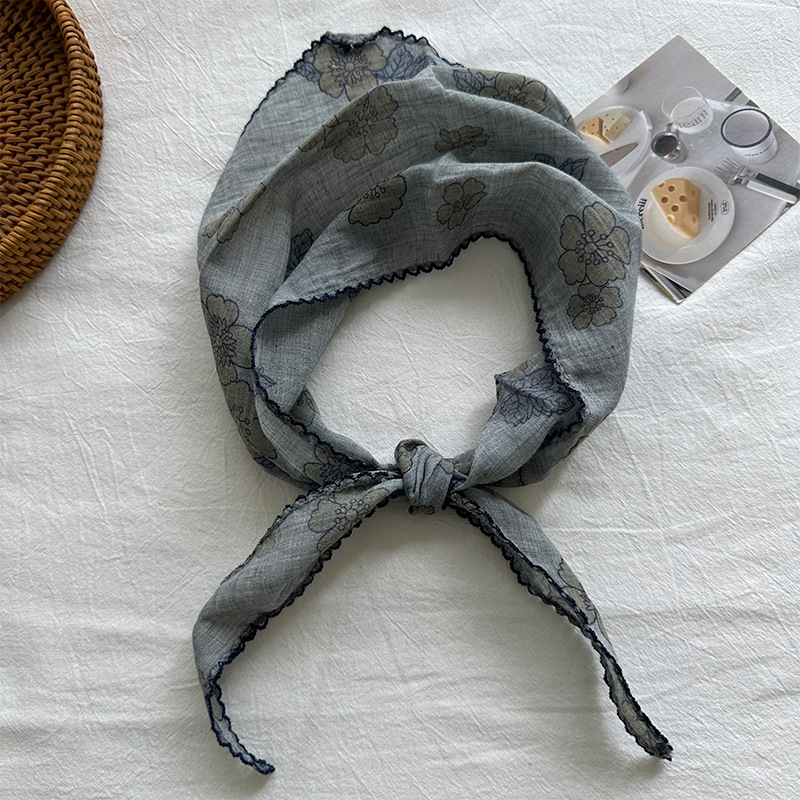 모리 스타일 빈티지 작은 꽃면과 리넨 작은 스카프 여자 일본과 한국 스타일 올매치 예술적 머리 스카프 올 매치 여자 코튼 트라이앵글 스카프