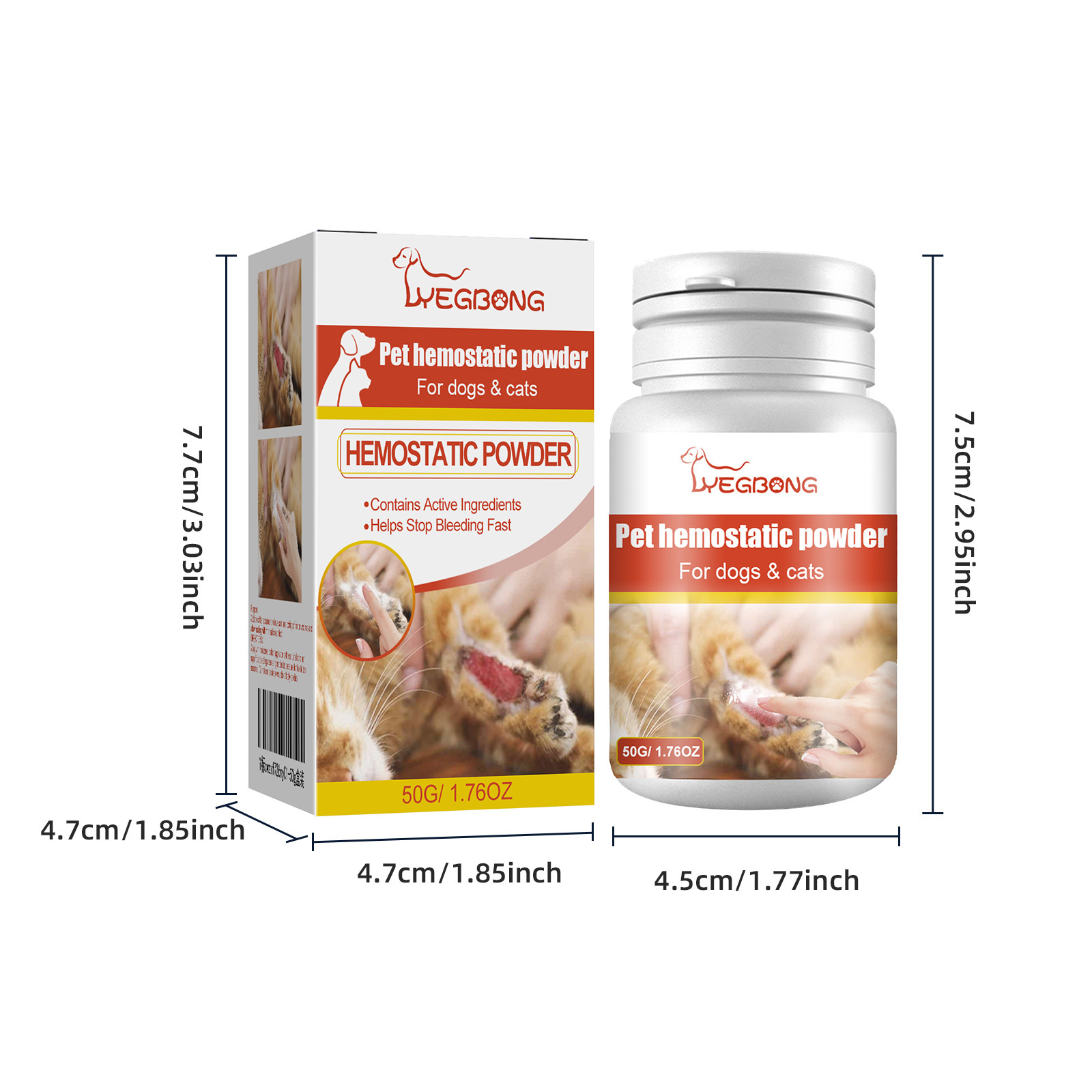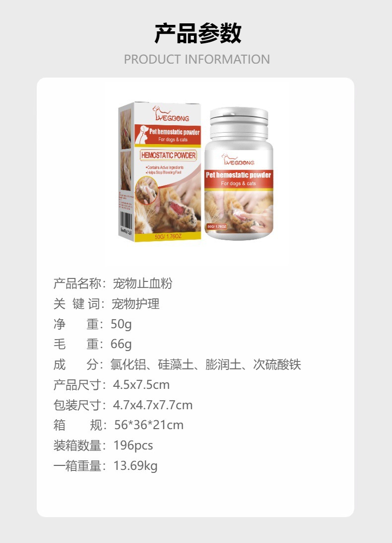 예봉 애완 동물 지혈 분말 고양이와 개 피부 상처 청소 지혈 분말 애완 동물 통증 완화 분말