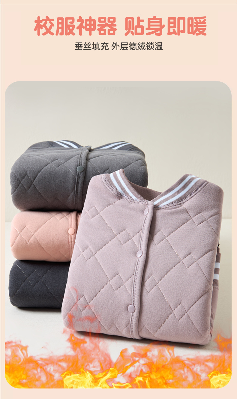 어린이 열 속옷 세트 라이너면 패딩 재킷 남학생과 여학생 교복 아티팩트 겨울 착용 두꺼운 초등학생면 패딩 재킷
