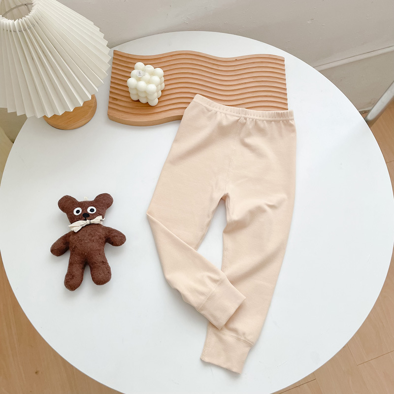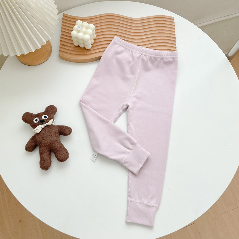 어린이용 가을 바지 280g 무봉제 남녀 아동용 순면 신축성 있는 하의 홈웨어 바지 몸에 꼭 맞는 보온 바지 기모 처리