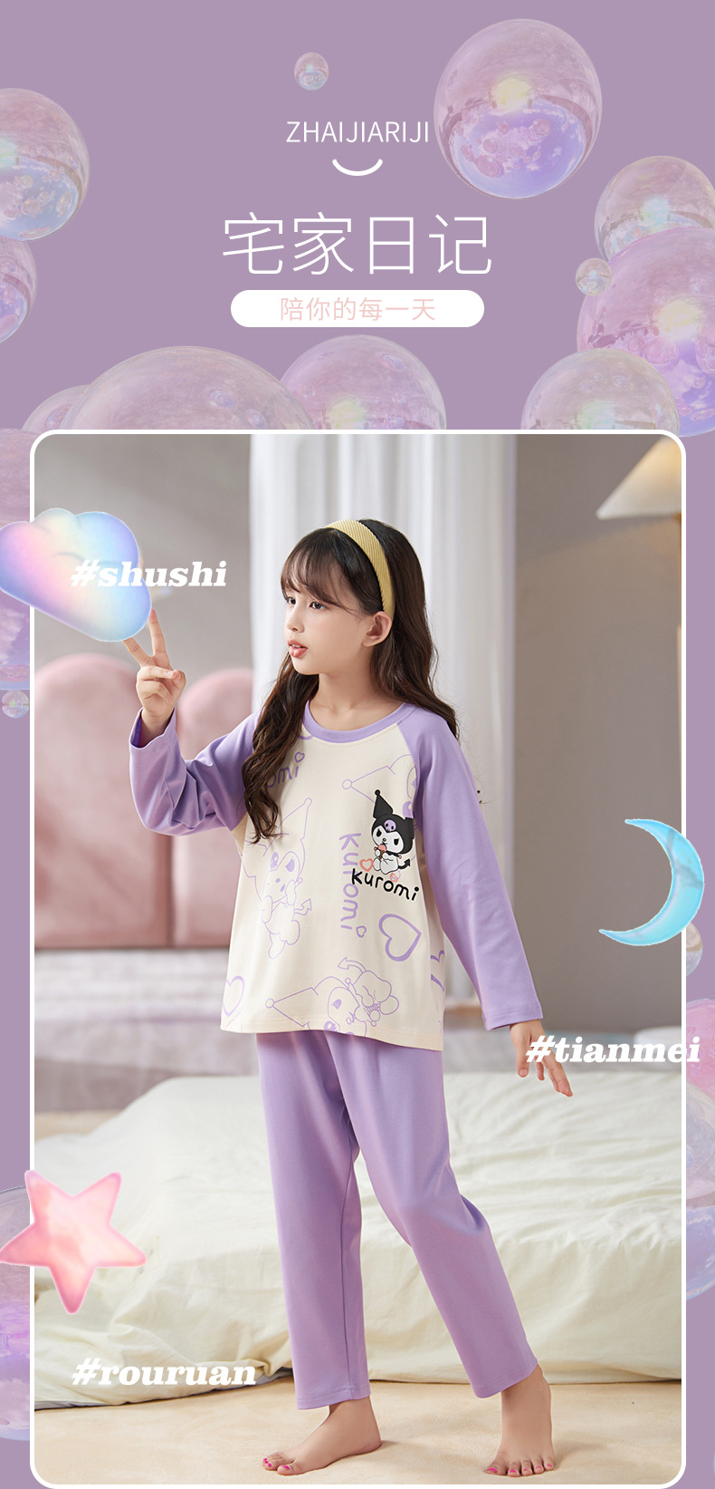 소녀 가을 옷 가을 바지 봄과 가을 긴 소매 어린이 속옷 Kulomi 세트 소녀 중 큰 어린이 순면 잠옷 가을과 겨울스토어 가기