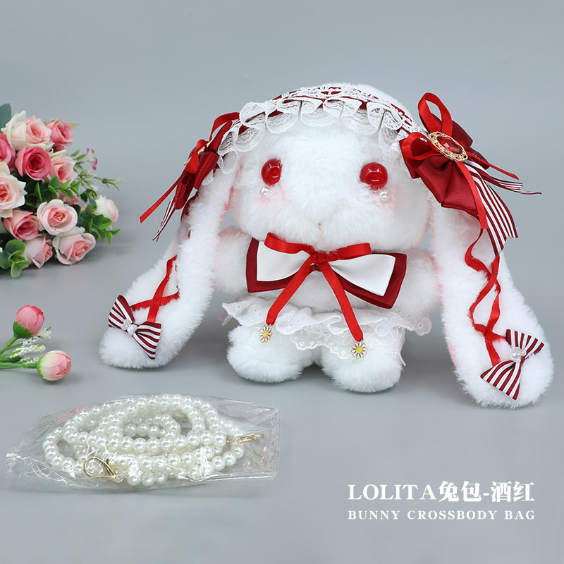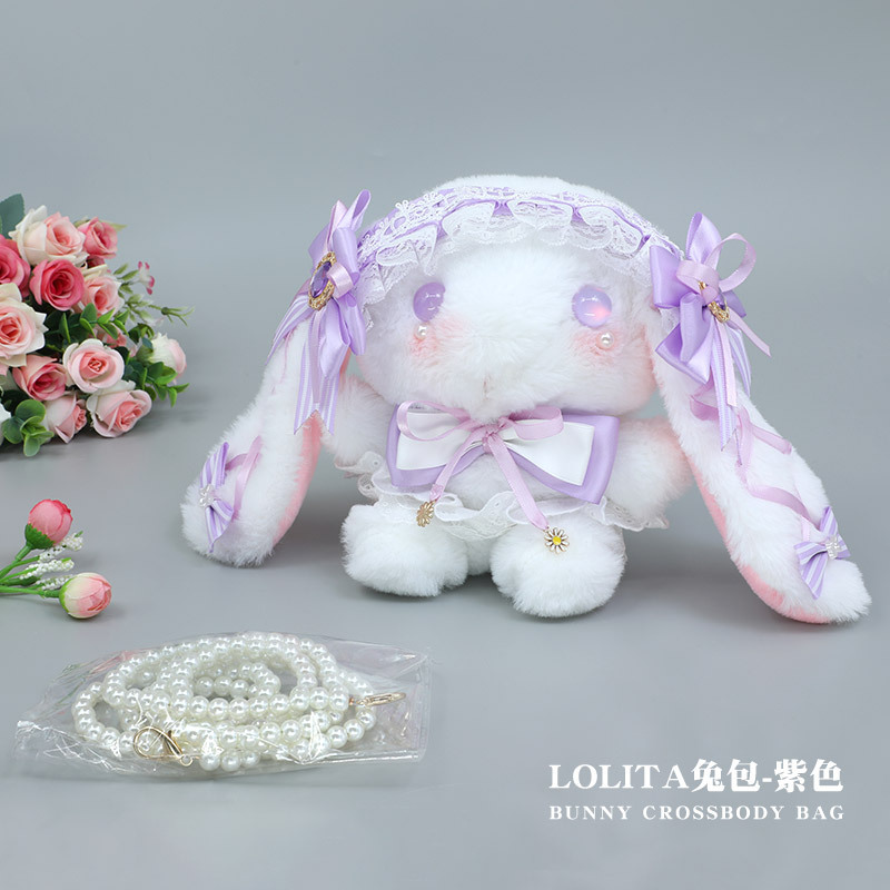 로리타 어깨 가방 재고 양털 토끼 가방 진주 체인 활 보조 동물 스타일 여성 크로스 바디 백스토어 가기