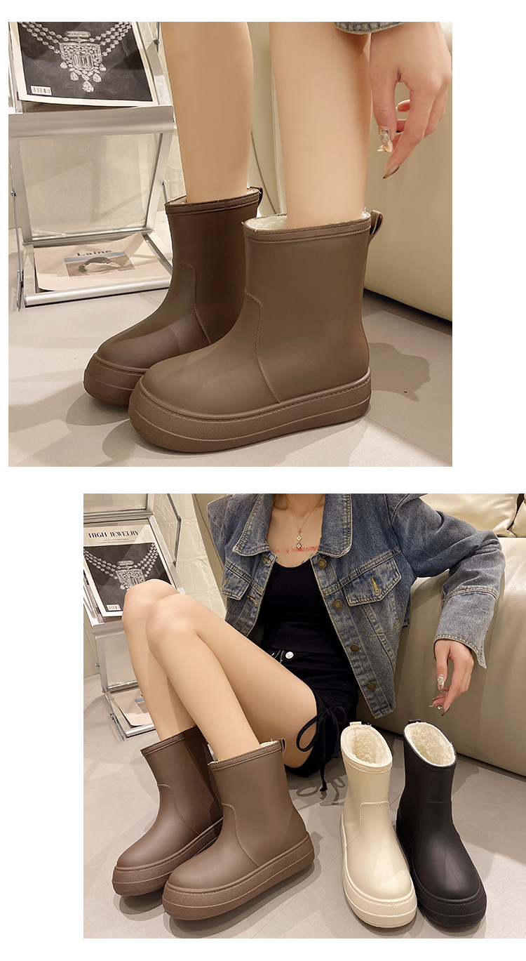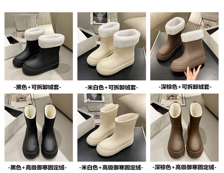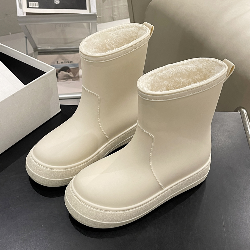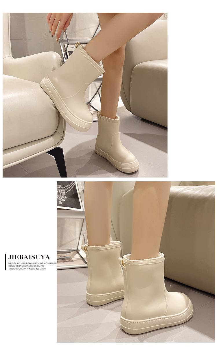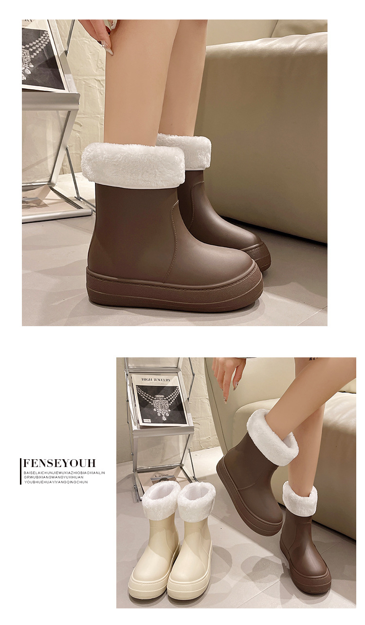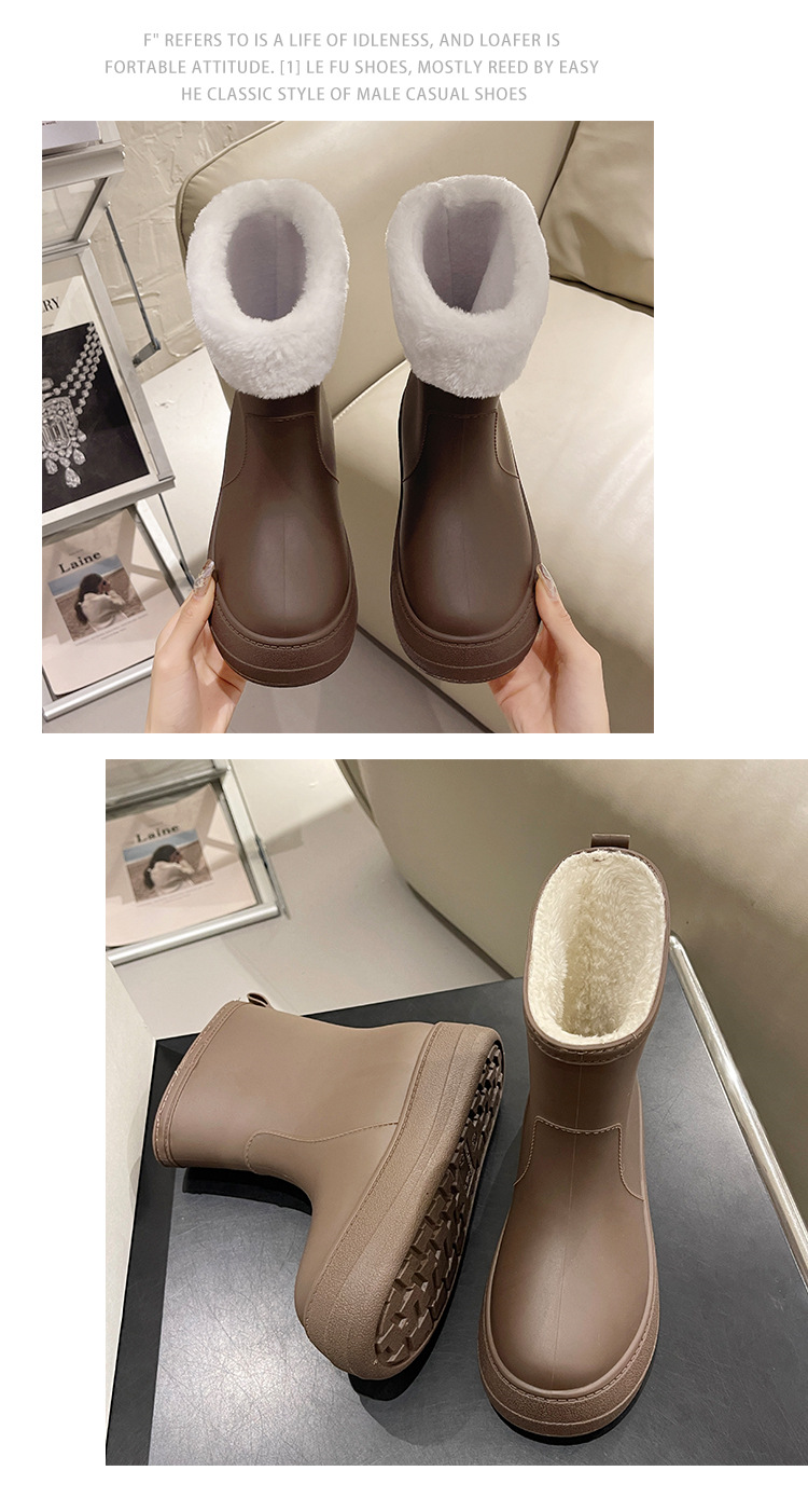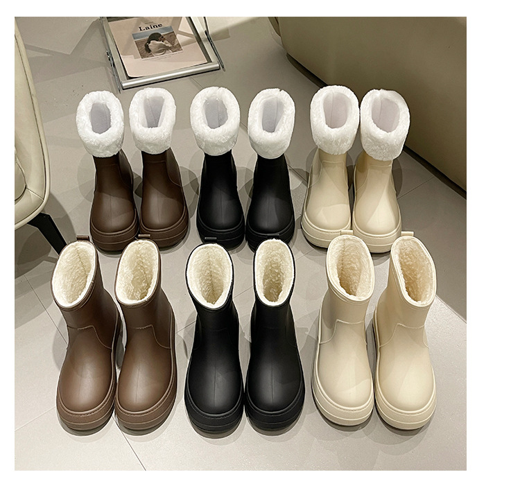 겨울 기모 따뜻한 비 신발 여성의 고정 벨벳 냉간 방지 중간 튜브 미끄럼 방지 여성용 방수 신발 고무 신발