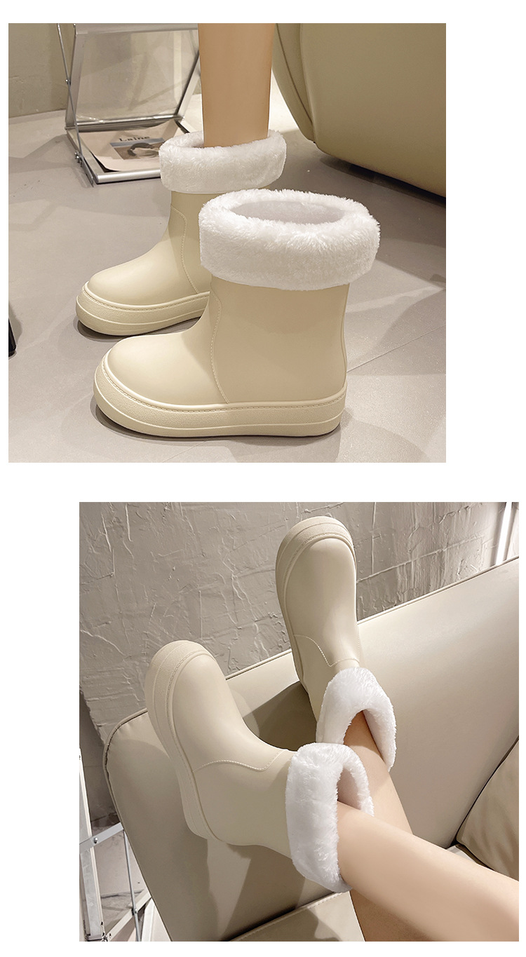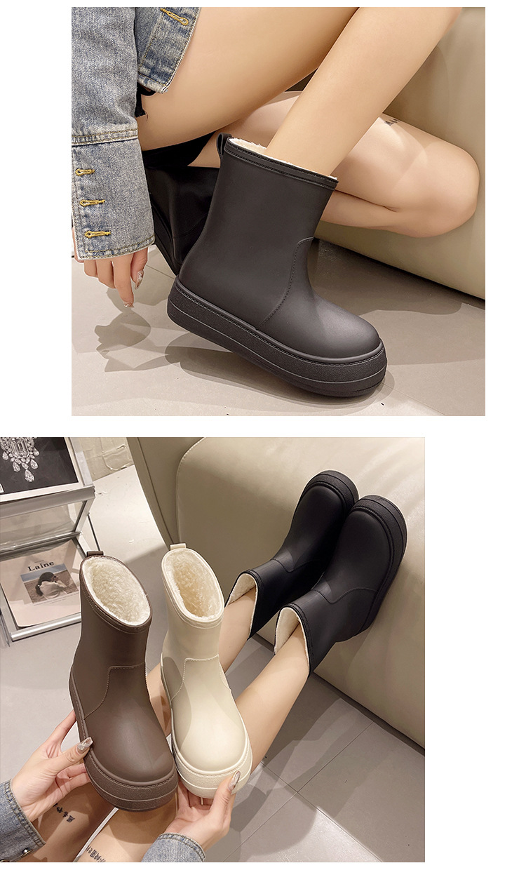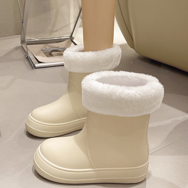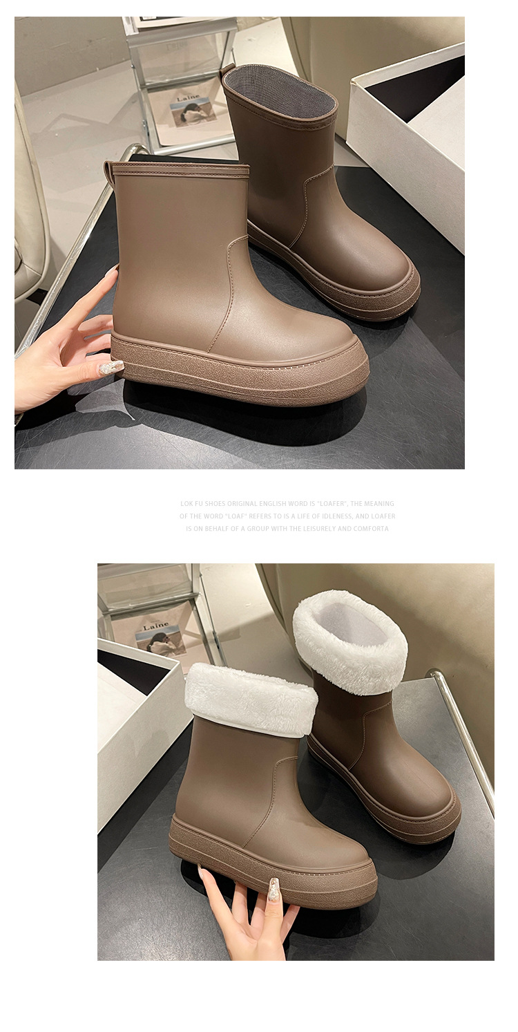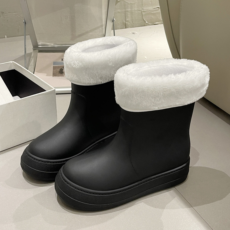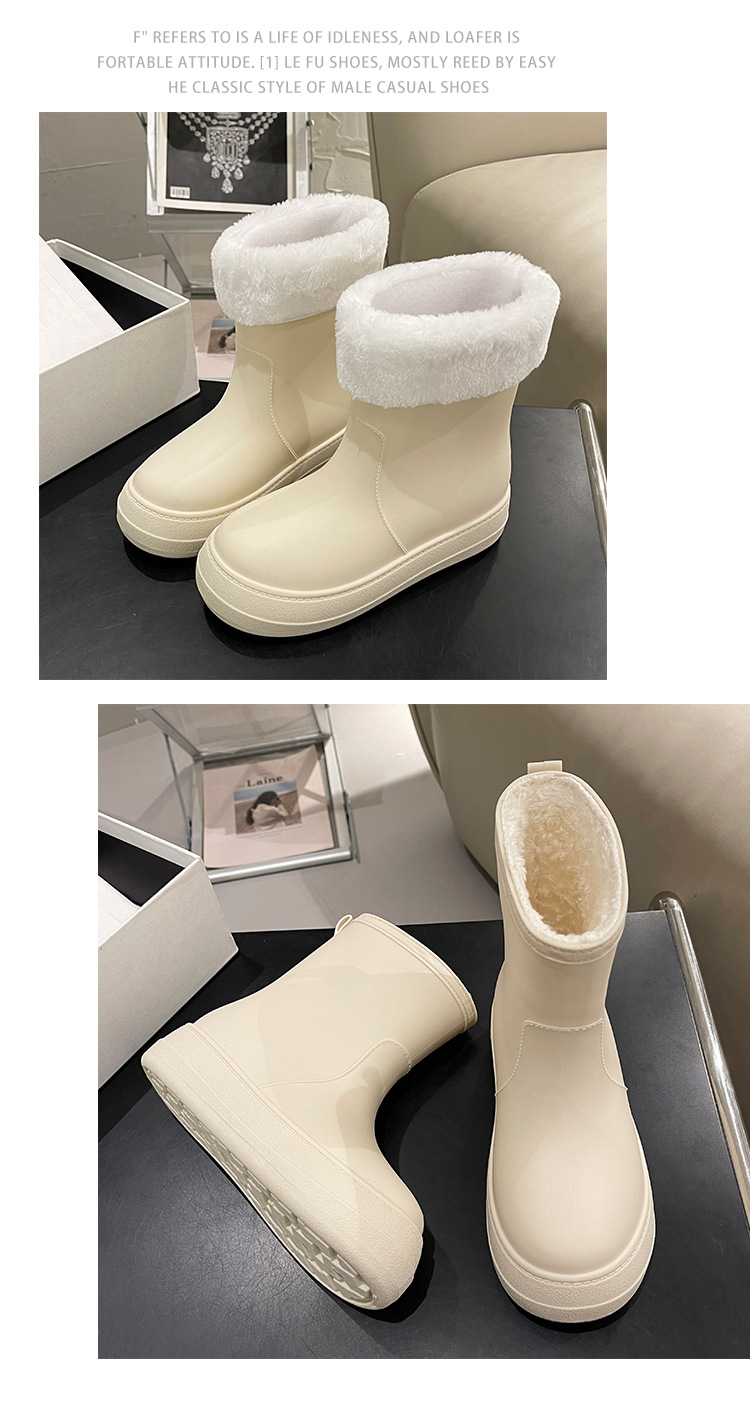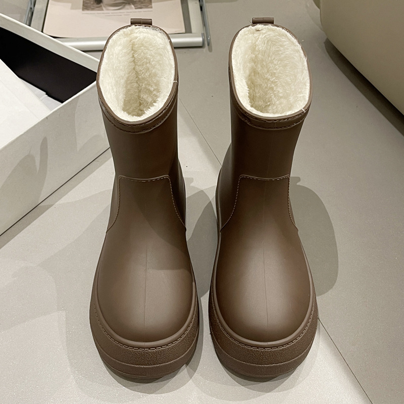 겨울 기모 따뜻한 비 신발 여성의 고정 벨벳 냉간 방지 중간 튜브 미끄럼 방지 여성용 방수 신발 고무 신발