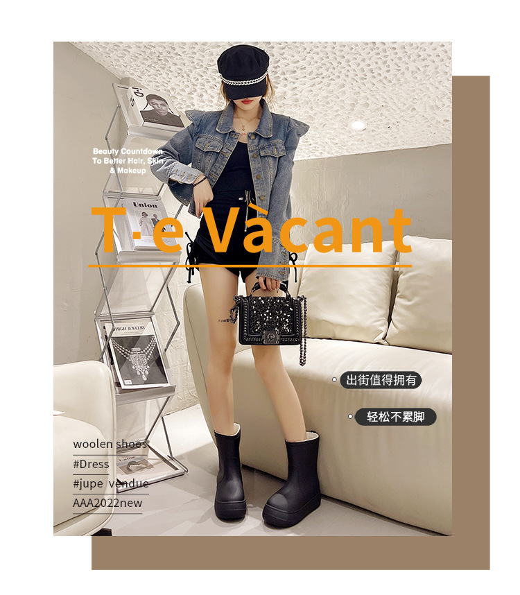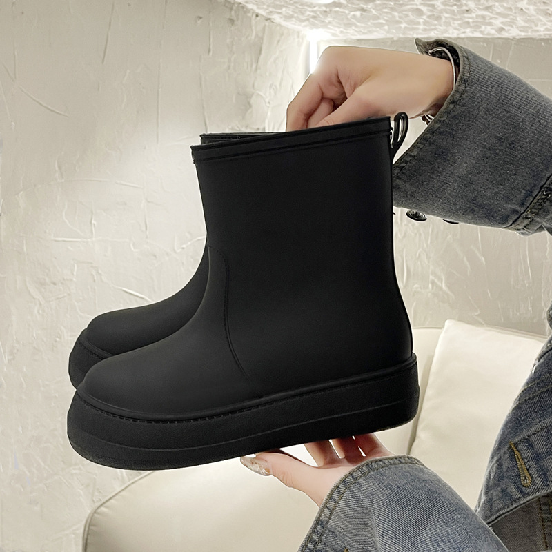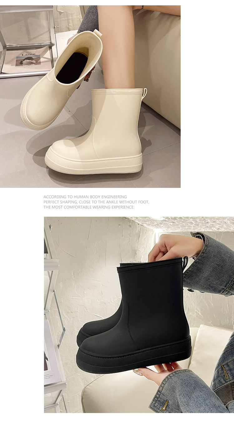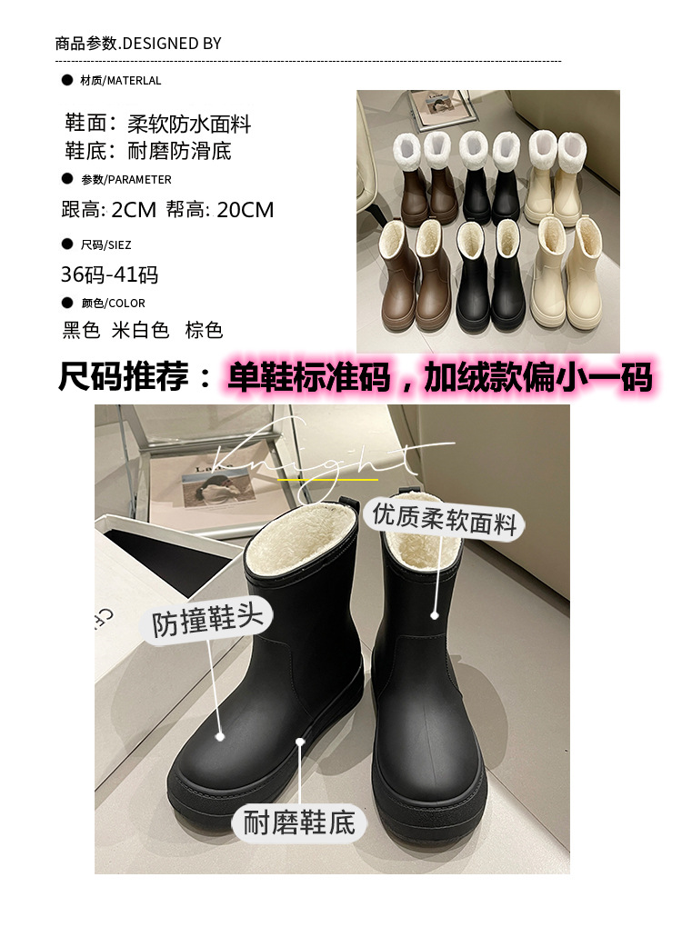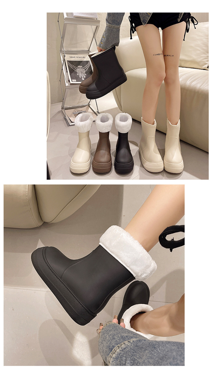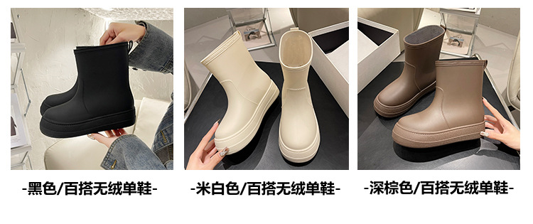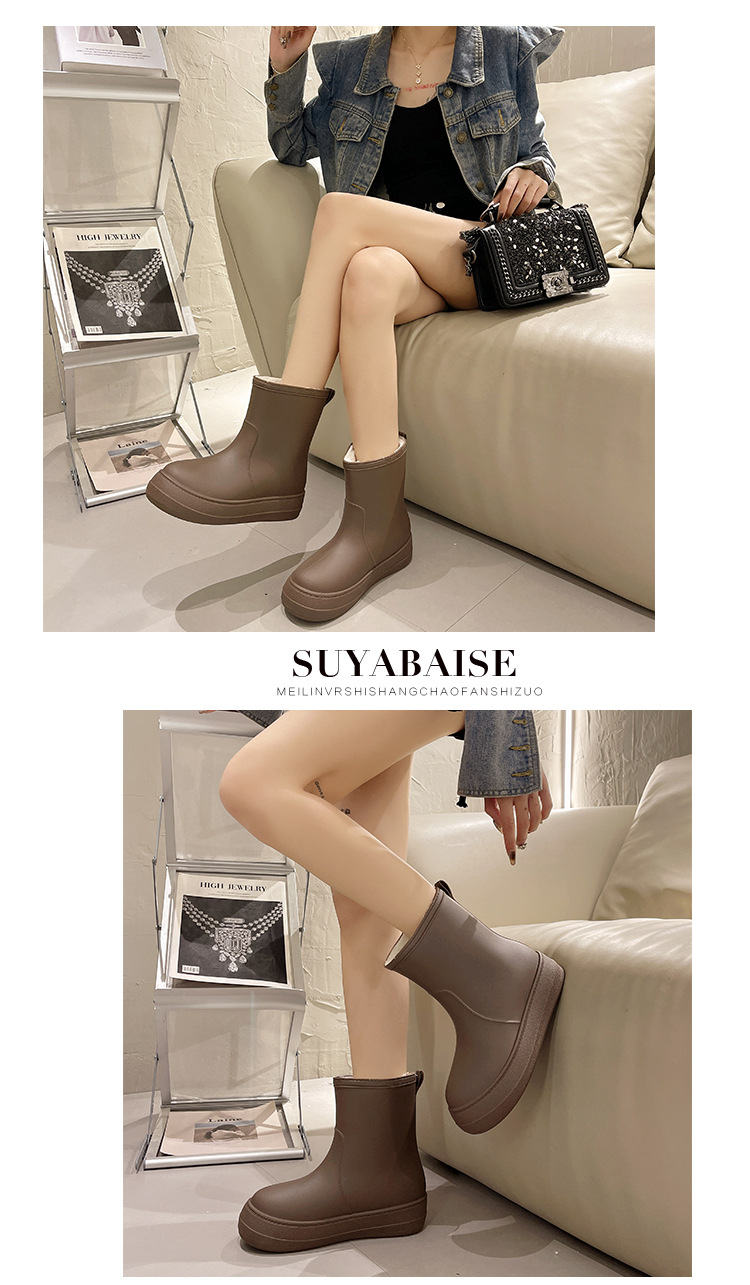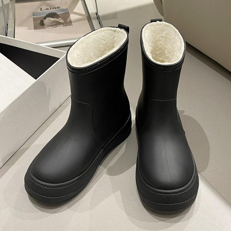 겨울 기모 따뜻한 비 신발 여성의 고정 벨벳 냉간 방지 중간 튜브 미끄럼 방지 여성용 방수 신발 고무 신발스토어 가기
