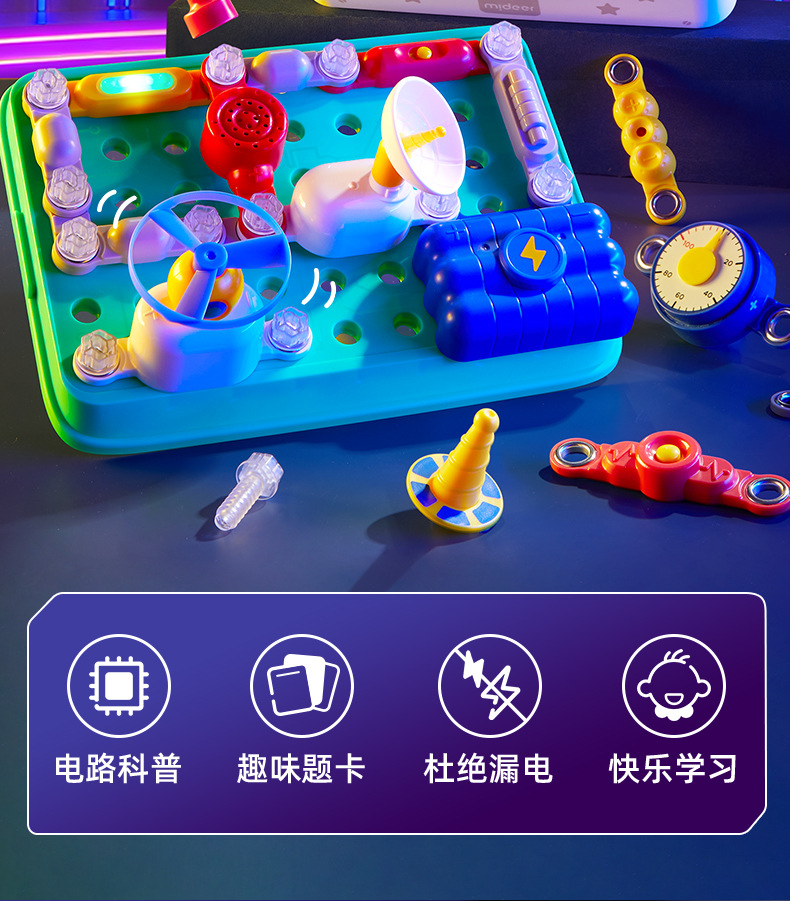 중동 밀루 전자 건물 블록 회로 조립 실험 장난감 유치원 어린이 과학 학생 세트 선물