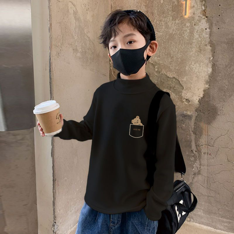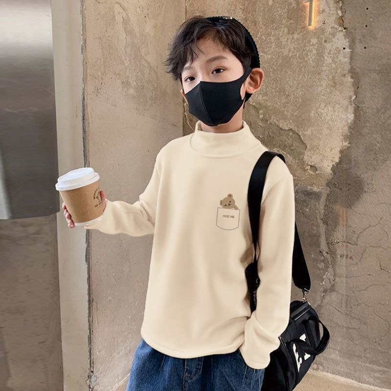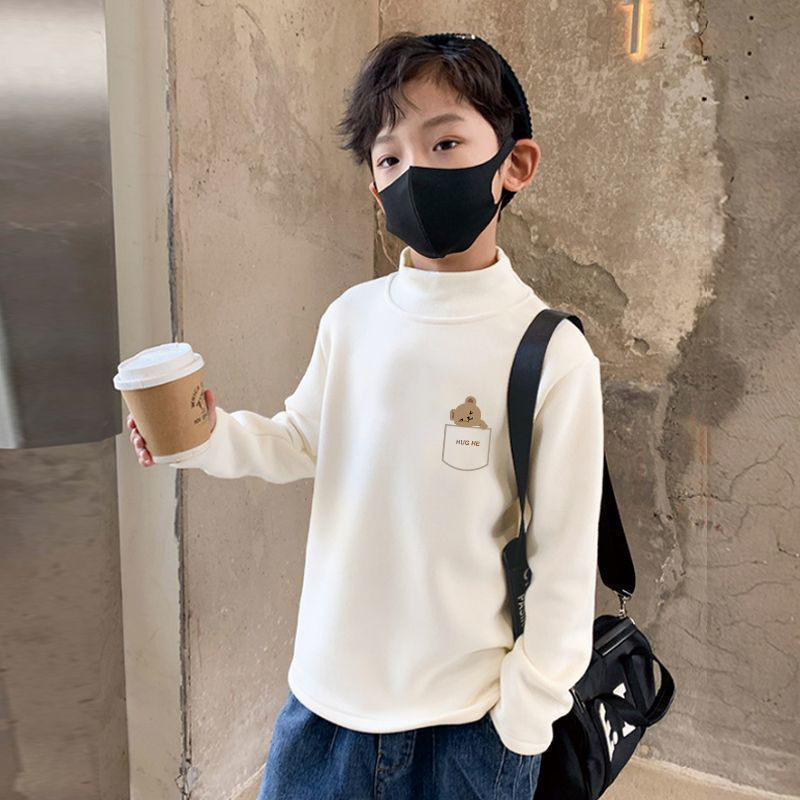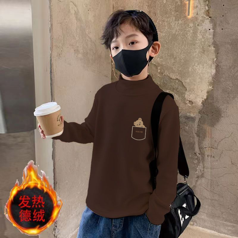 Y2556 # 어린이 벨벳 세미 하이 칼라 백킹 셔츠 가을/겨울 소년 롱 슬리브 티셔츠 중 큰 어린이 기모 따뜻한 재킷 T스토어 가기