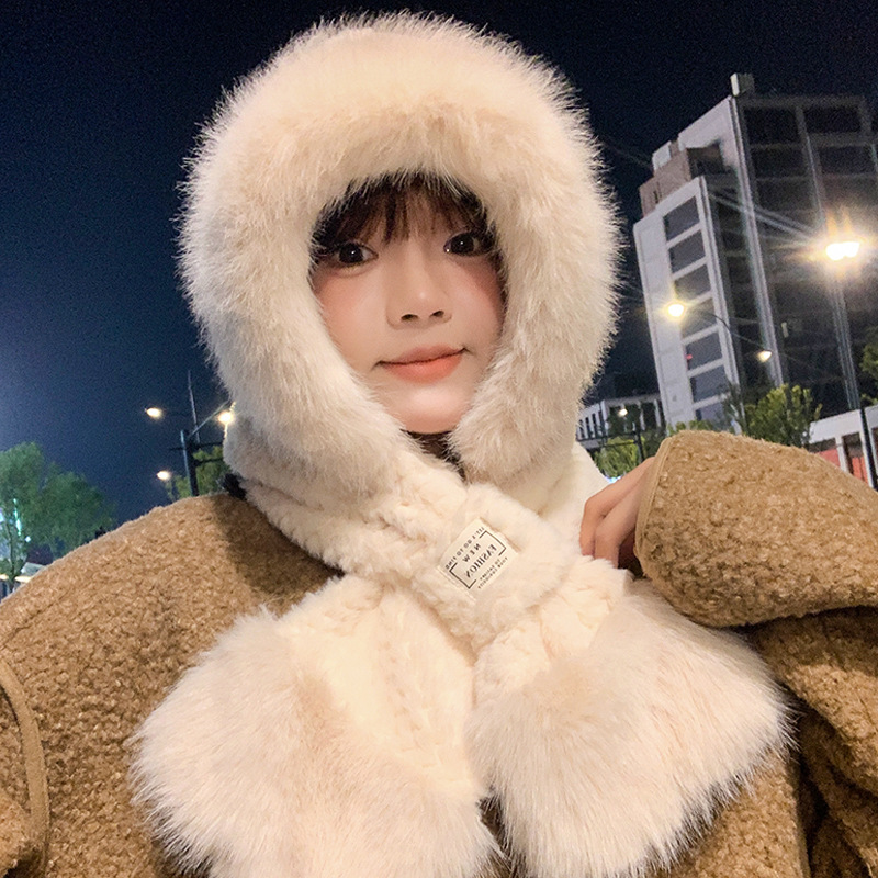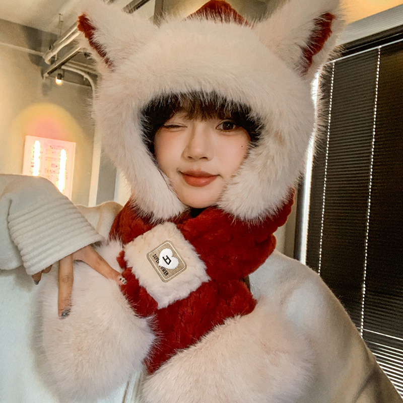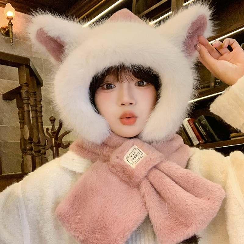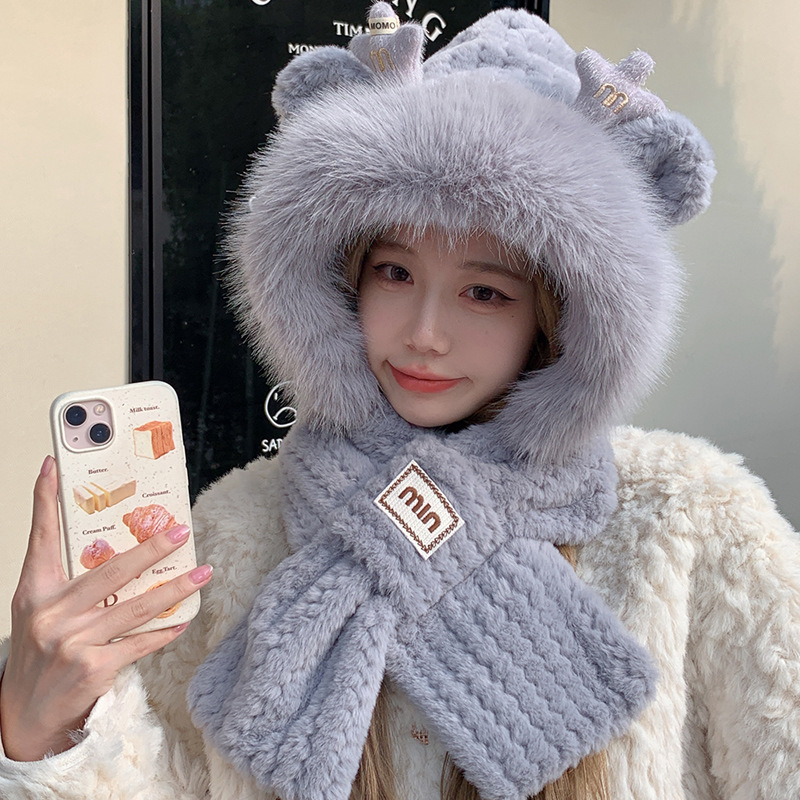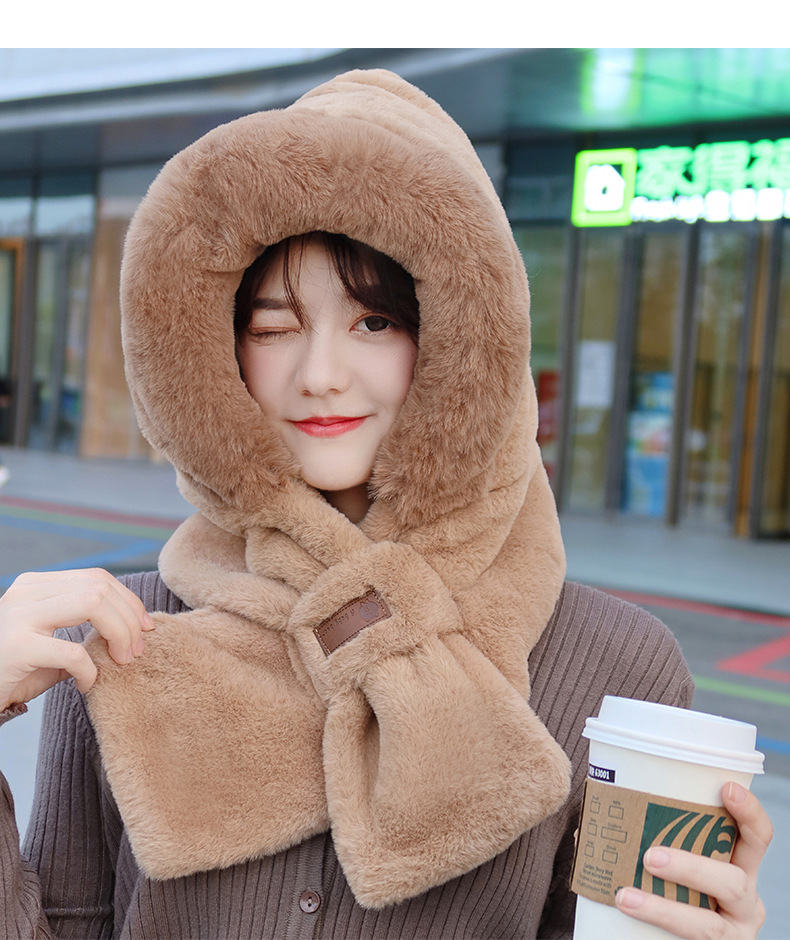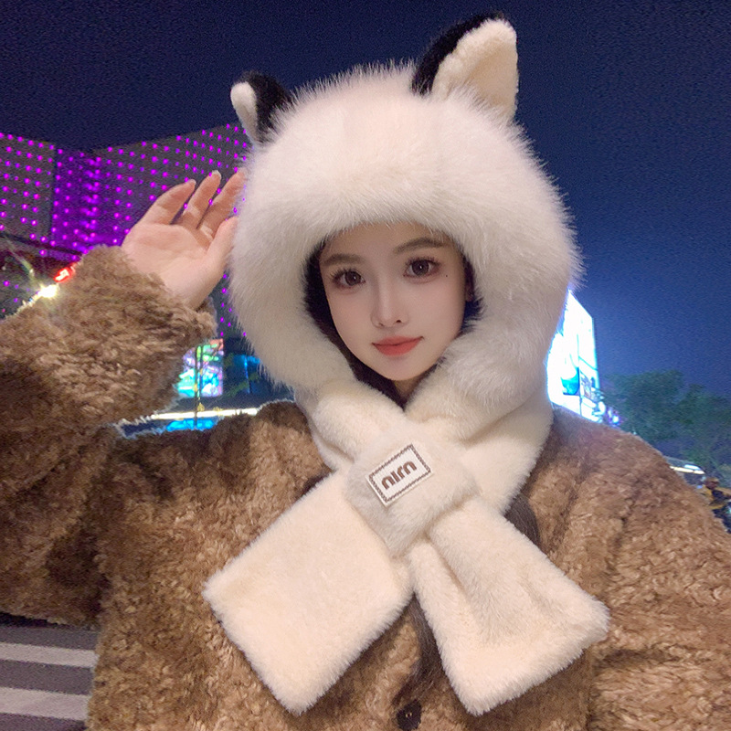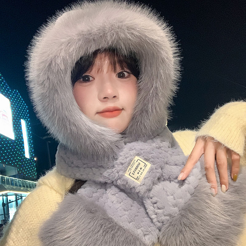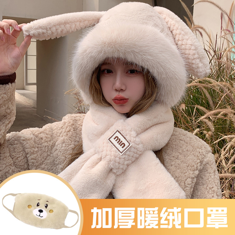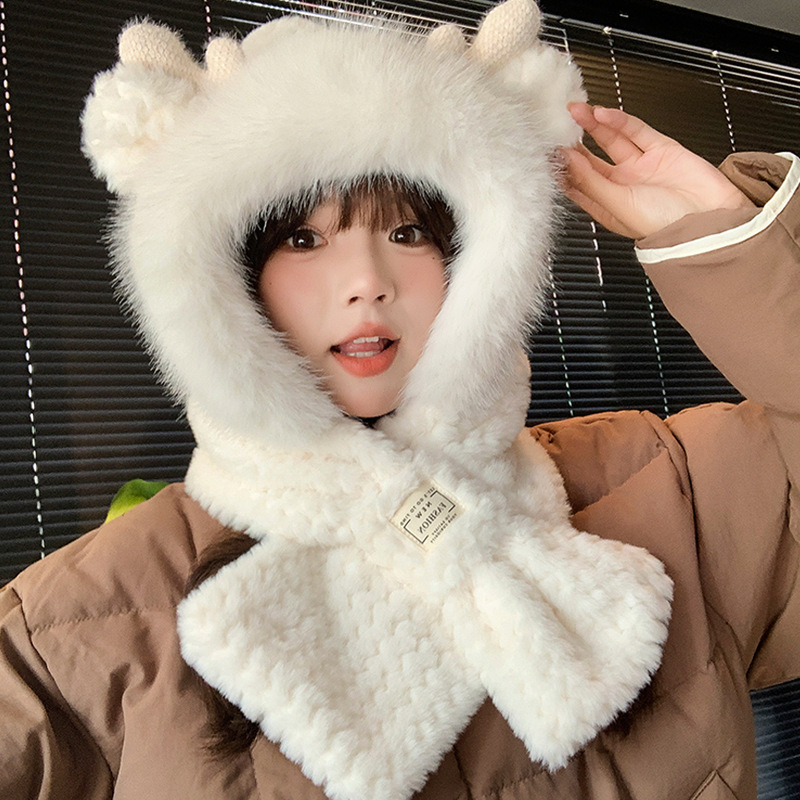 모자와 스카프가 하나로 통합된 여성용 겨울 사이클링 플러시 따뜻한 귀 보호 방풍 및 방한 곰 다용도 스카프 모자 레이펑 모자스토어 가기