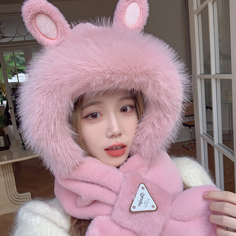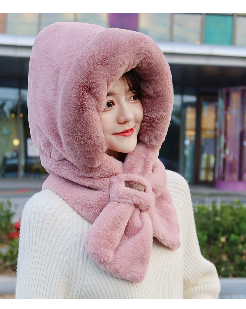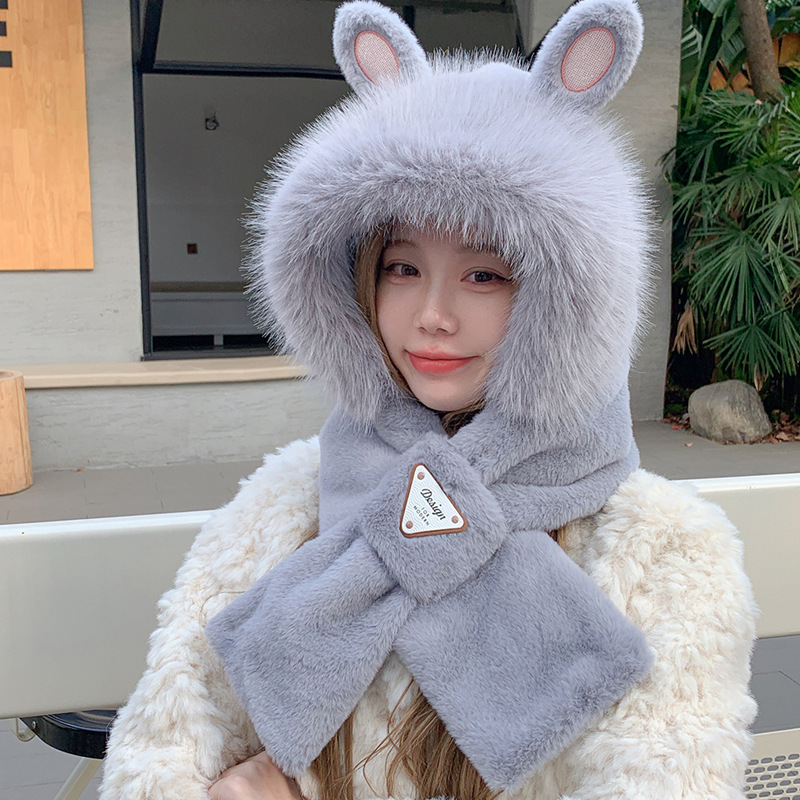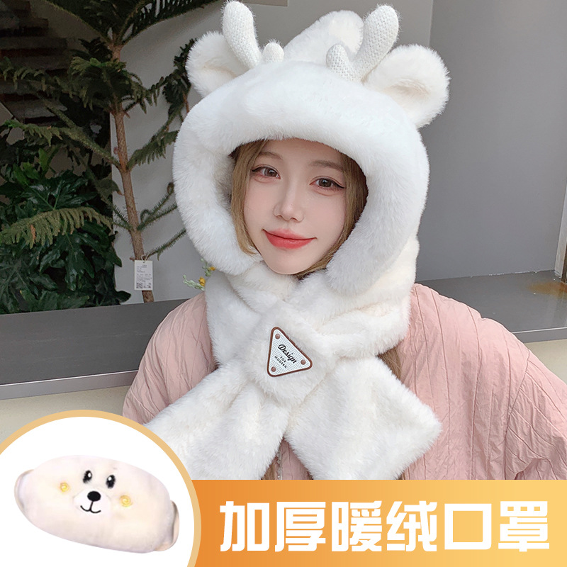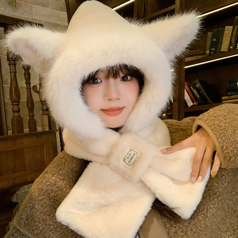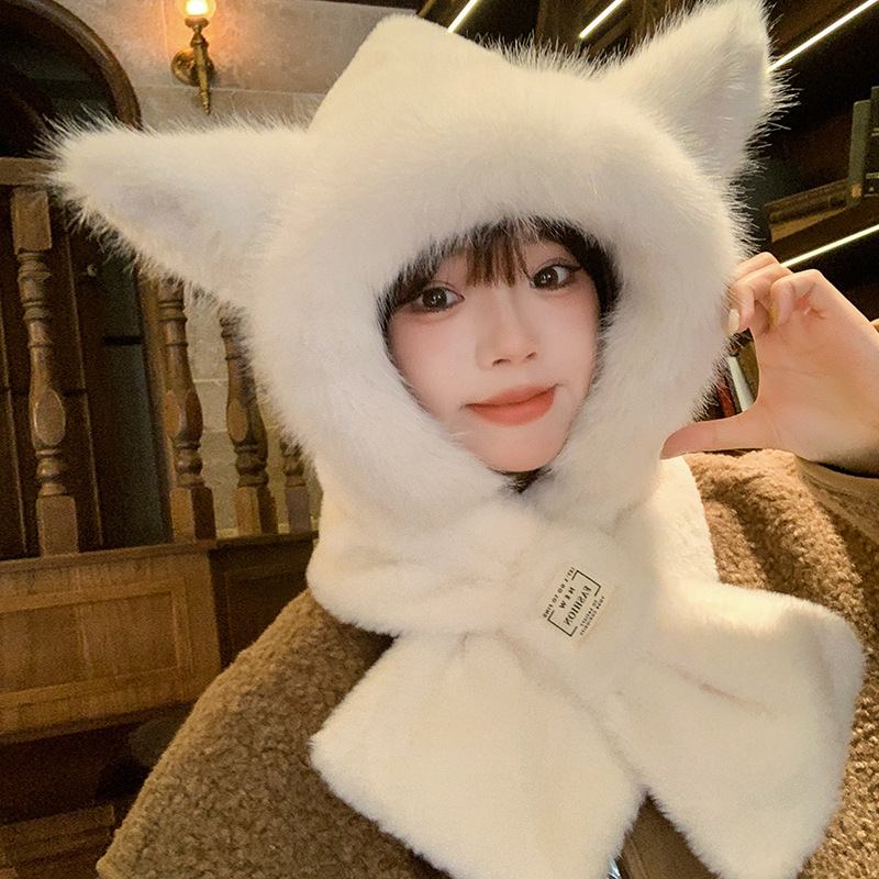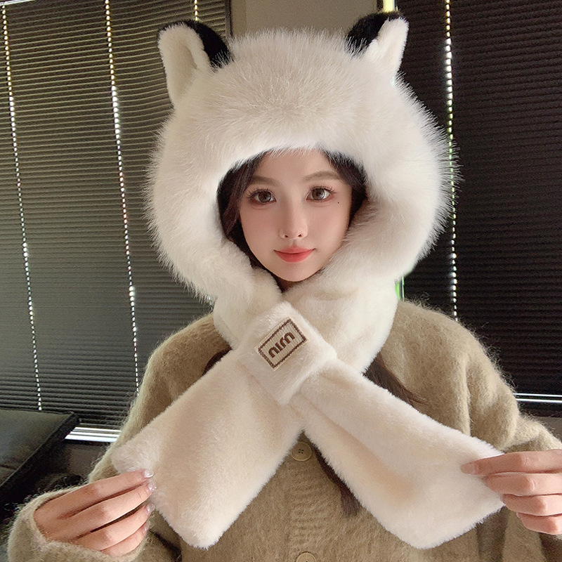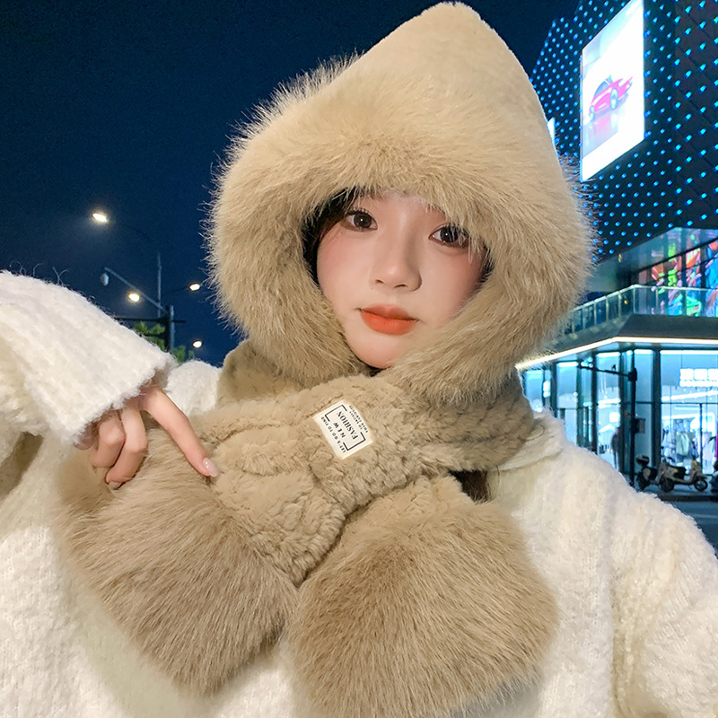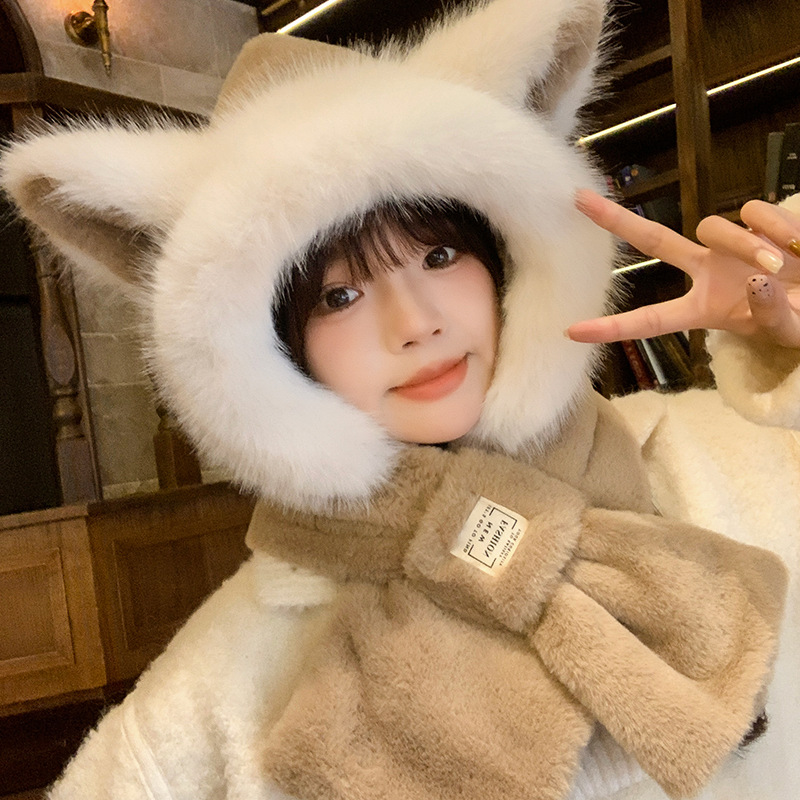 모자와 스카프가 하나로 통합된 여성용 겨울 사이클링 플러시 따뜻한 귀 보호 방풍 및 방한 곰 다용도 스카프 모자 레이펑 모자스토어 가기