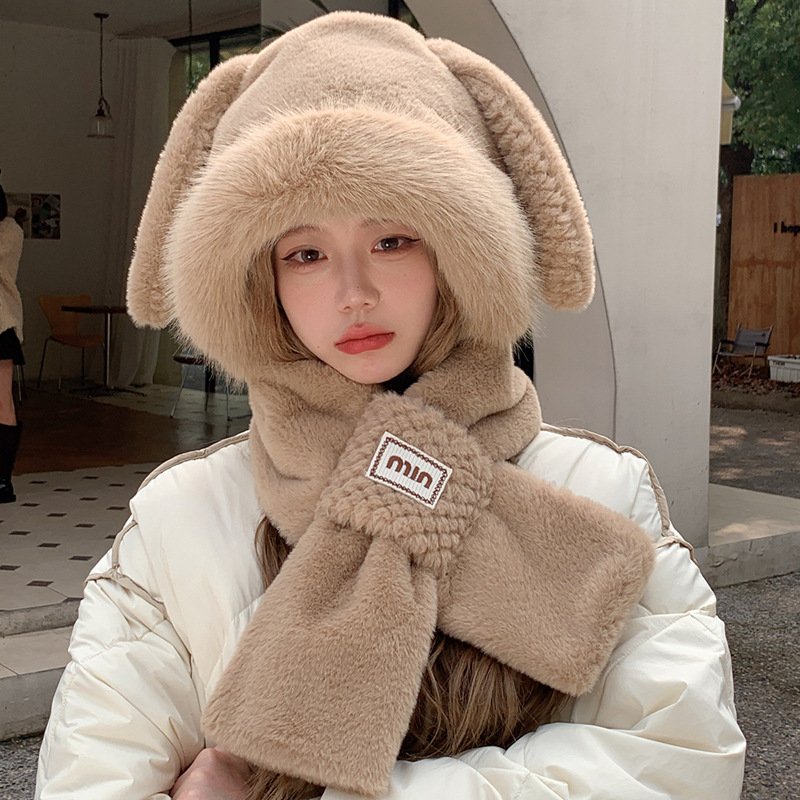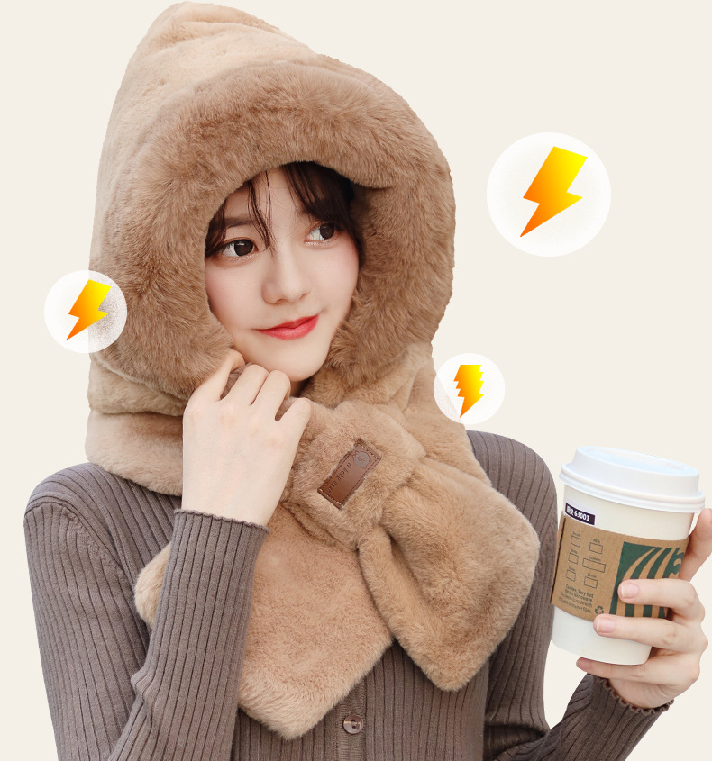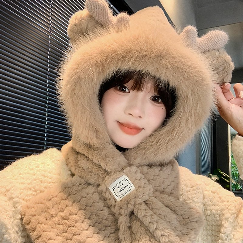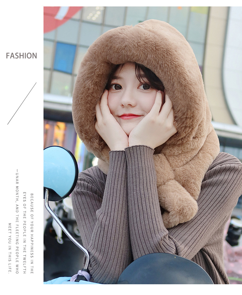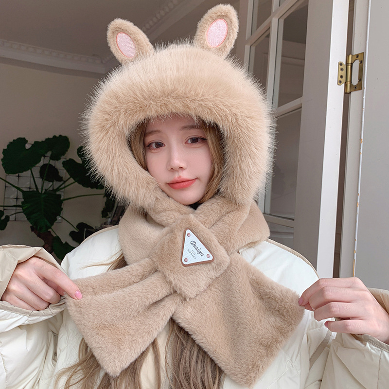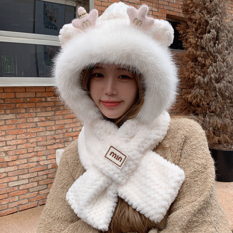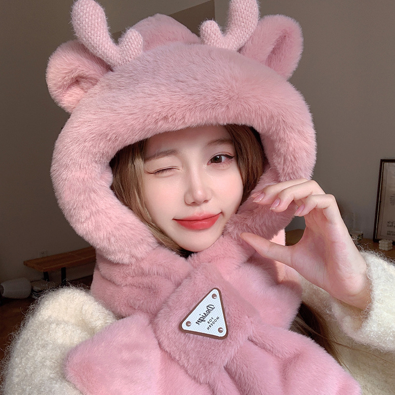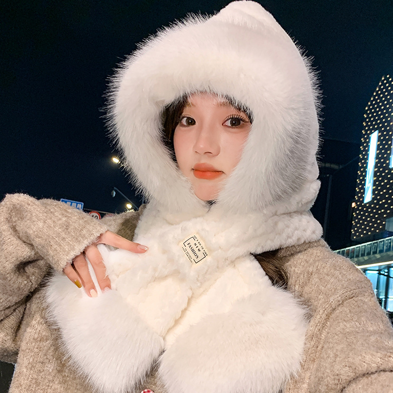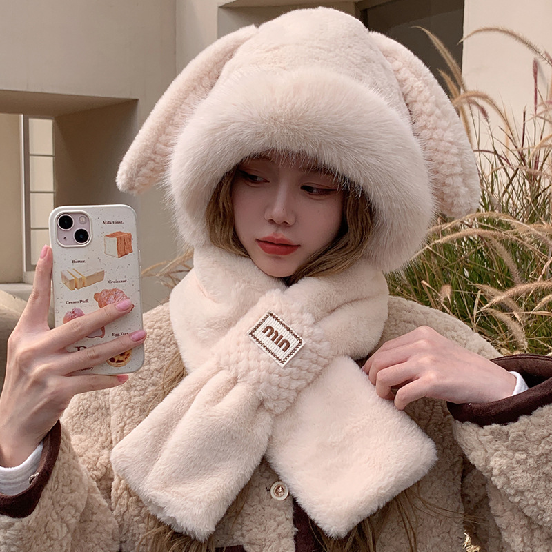 모자와 스카프가 하나로 통합된 여성용 겨울 사이클링 플러시 따뜻한 귀 보호 방풍 및 방한 곰 다용도 스카프 모자 레이펑 모자스토어 가기