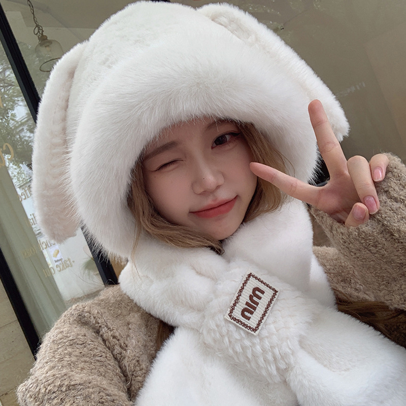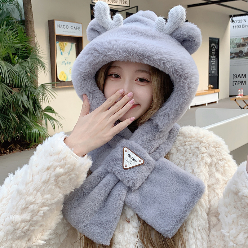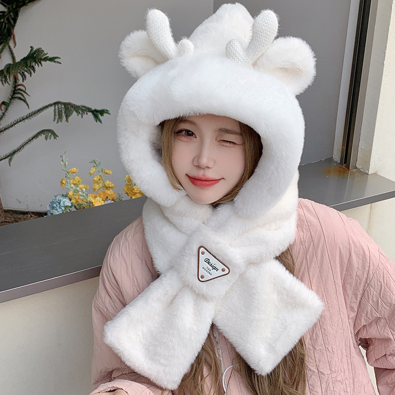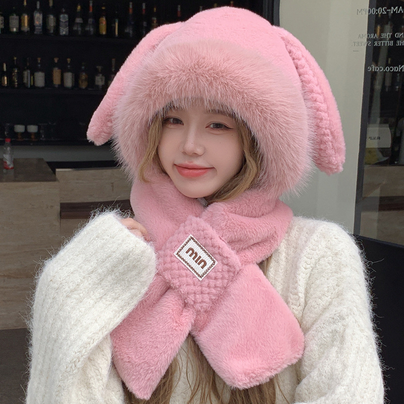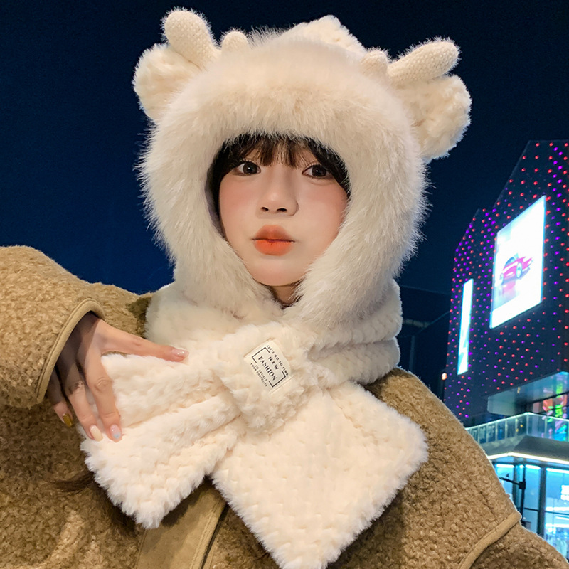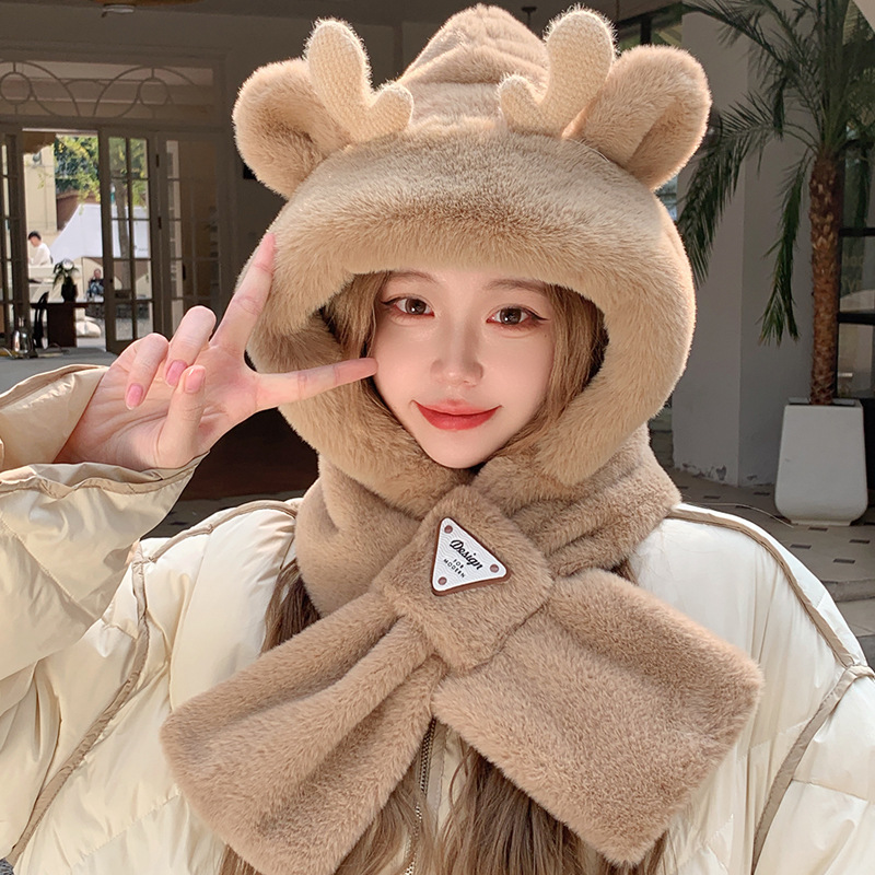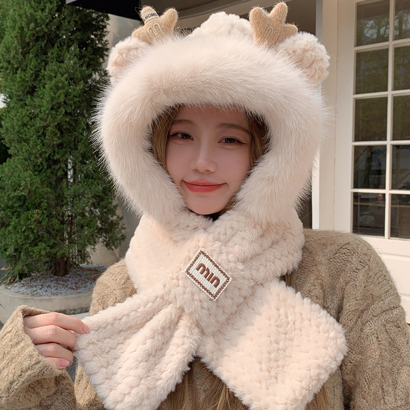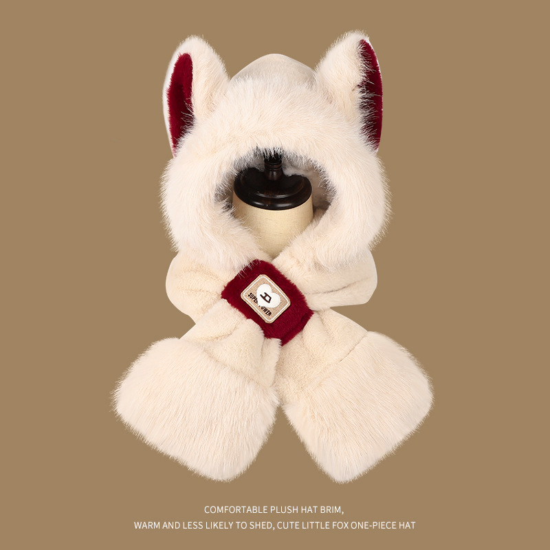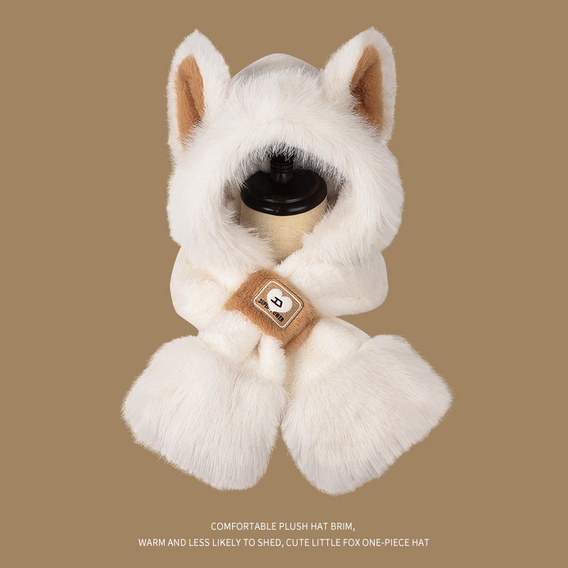 모자와 스카프가 하나로 통합된 여성용 겨울 사이클링 플러시 따뜻한 귀 보호 방풍 및 방한 곰 다용도 스카프 모자 레이펑 모자스토어 가기