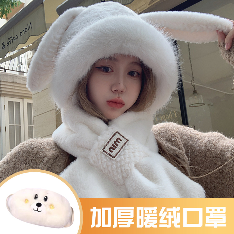 • 토끼 + 따뜻한 벨벳 마스크 - 우유 흰색