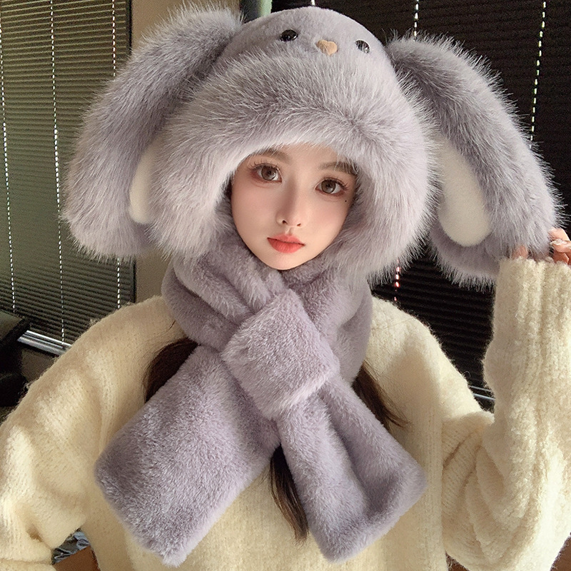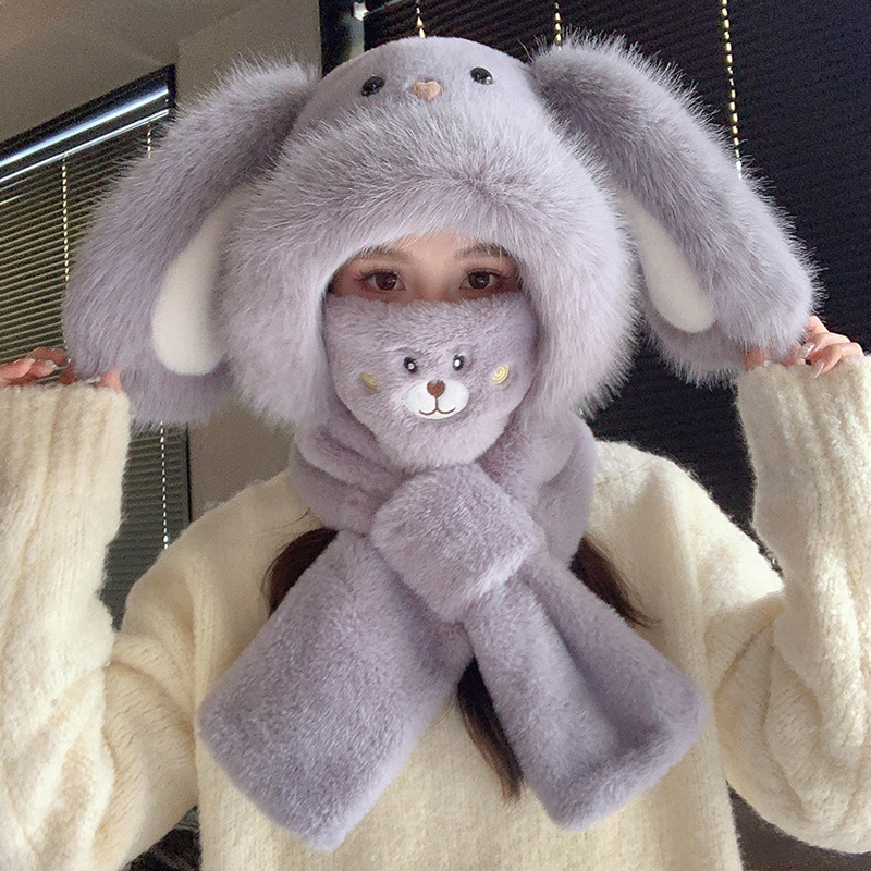 • 귀가 늘어진 토끼 + 따뜻한 벨벳 마스크 - 따뜻한 그레이 (스카프 + 스카프 = 겸용)