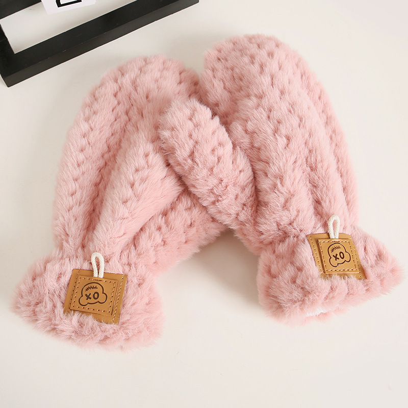 • 우븐 질감의 따뜻한 벨벳 장갑 - 가죽 핑크