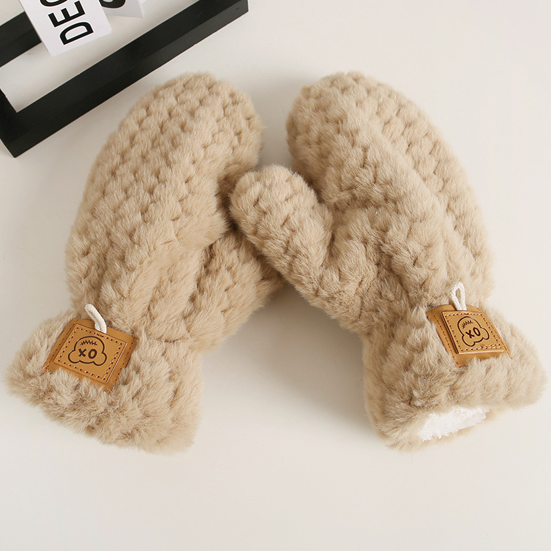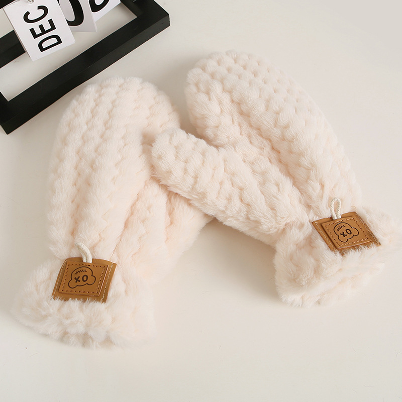 • 우븐 질감의 따뜻한 벨벳 장갑 - 따뜻한 쌀
