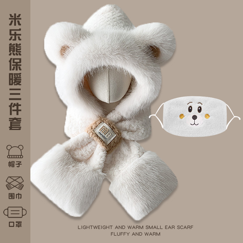 • 곰귀땋기+따뜻한 벨벳마스크-밀크화이트