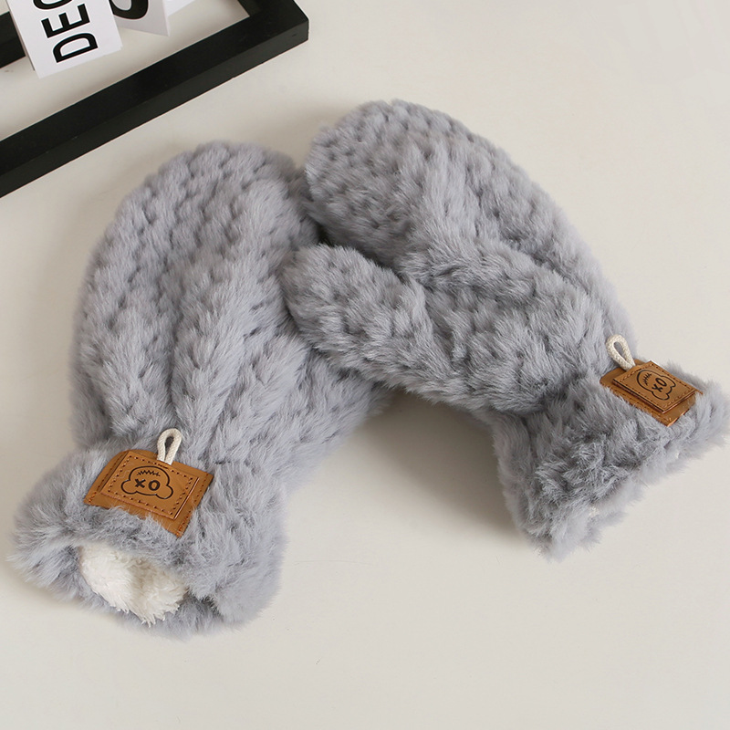 • 우븐 질감의 따뜻한 벨벳 장갑 - 웜 그레이