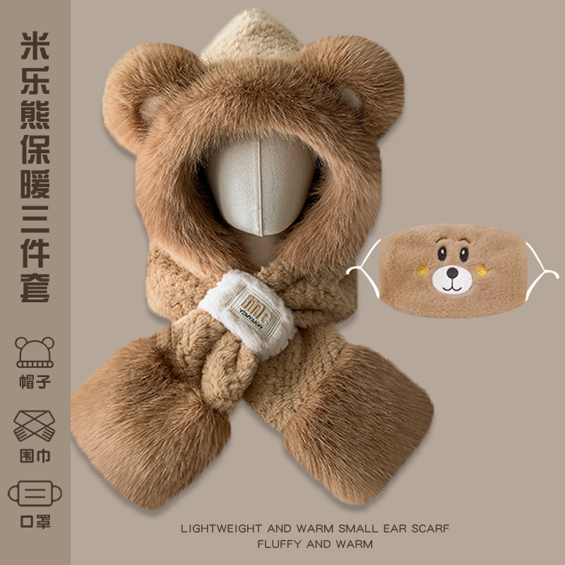 • 곰귀-배색+따뜻한 벨벳 마스크--밀크티 브라운