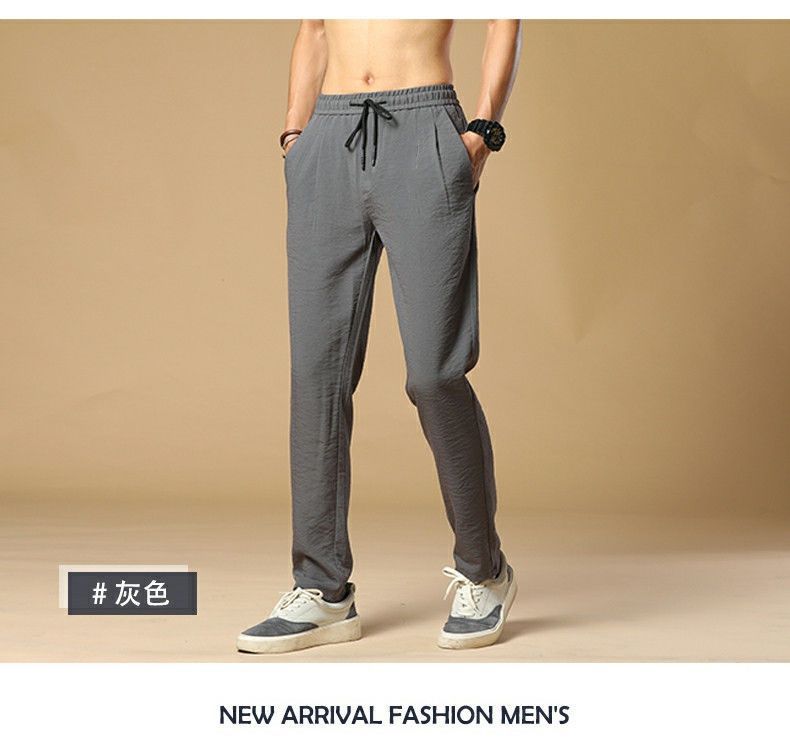 바지 남자 여름 얇은 통기성 아이스 실크 캐주얼 바지 플러스 사이즈 스트레이트 루즈 탄성 빠른 건조 탄성 허리 레이 레드스토어 가기