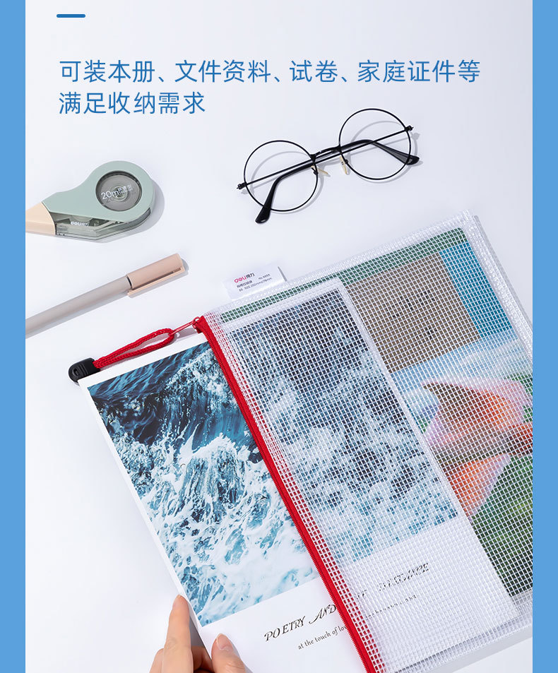 델리 문구 5655 지퍼 가방 문서 가방 투명 플라스틱 메쉬 가방 b5 서류 가방 가장자리 가방 정보 가방