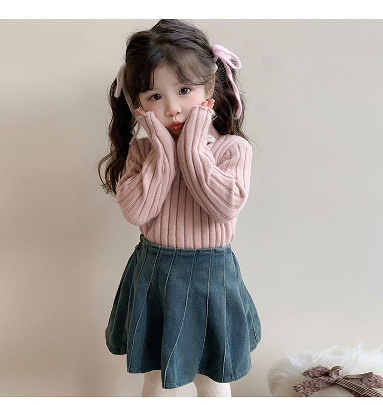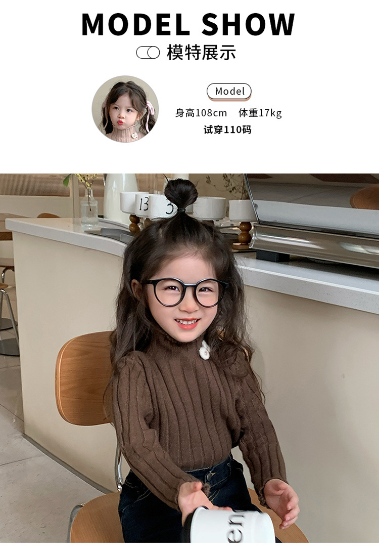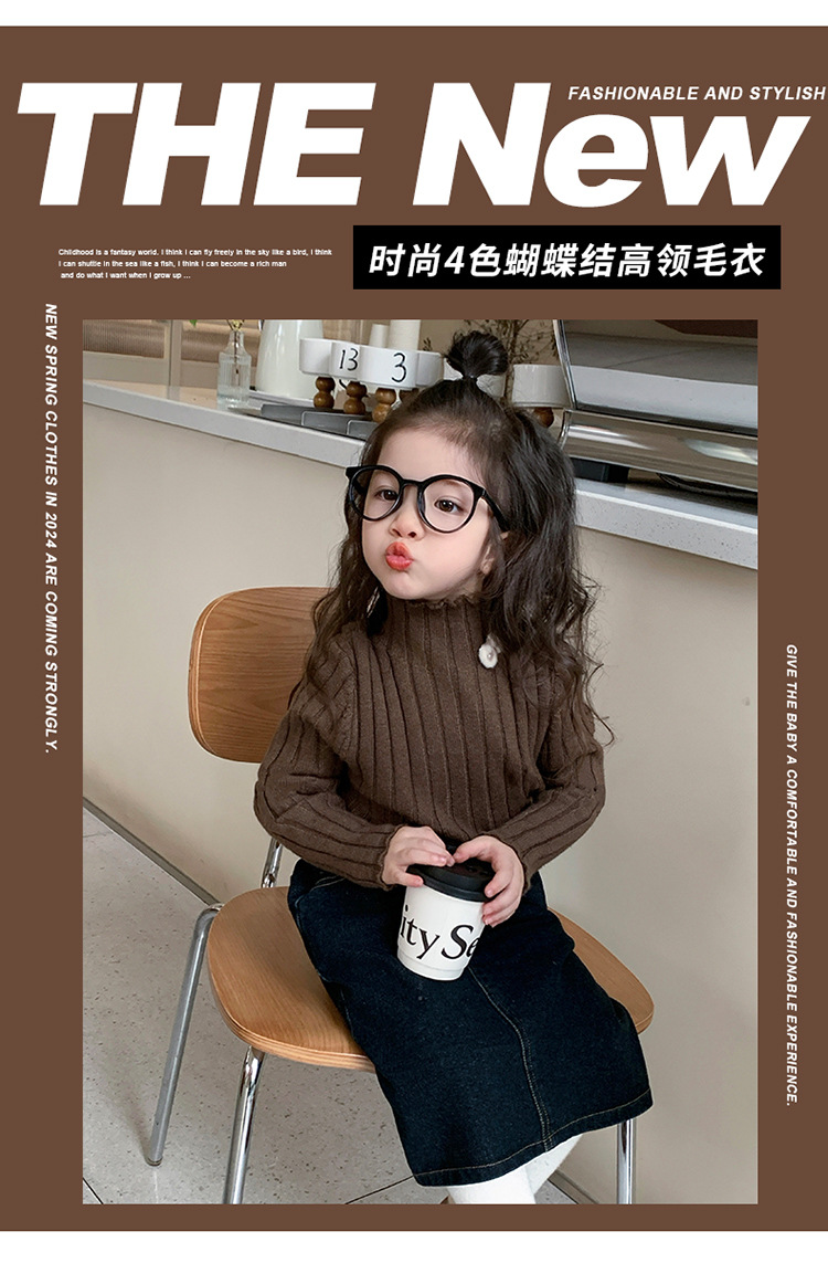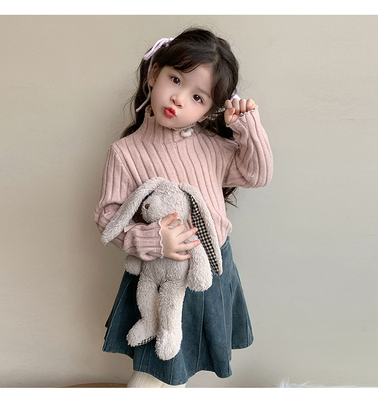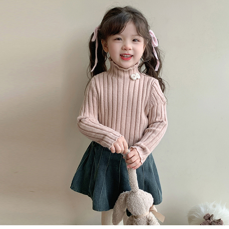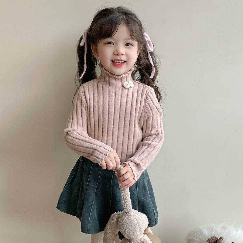2025년 신상 한국 스타일 여아용 하이넥 스웨터 가을 겨울 신상 아동 패션 상의 유행 아동복스토어 가기