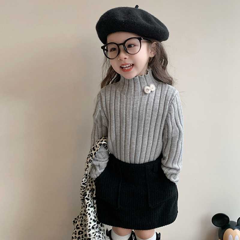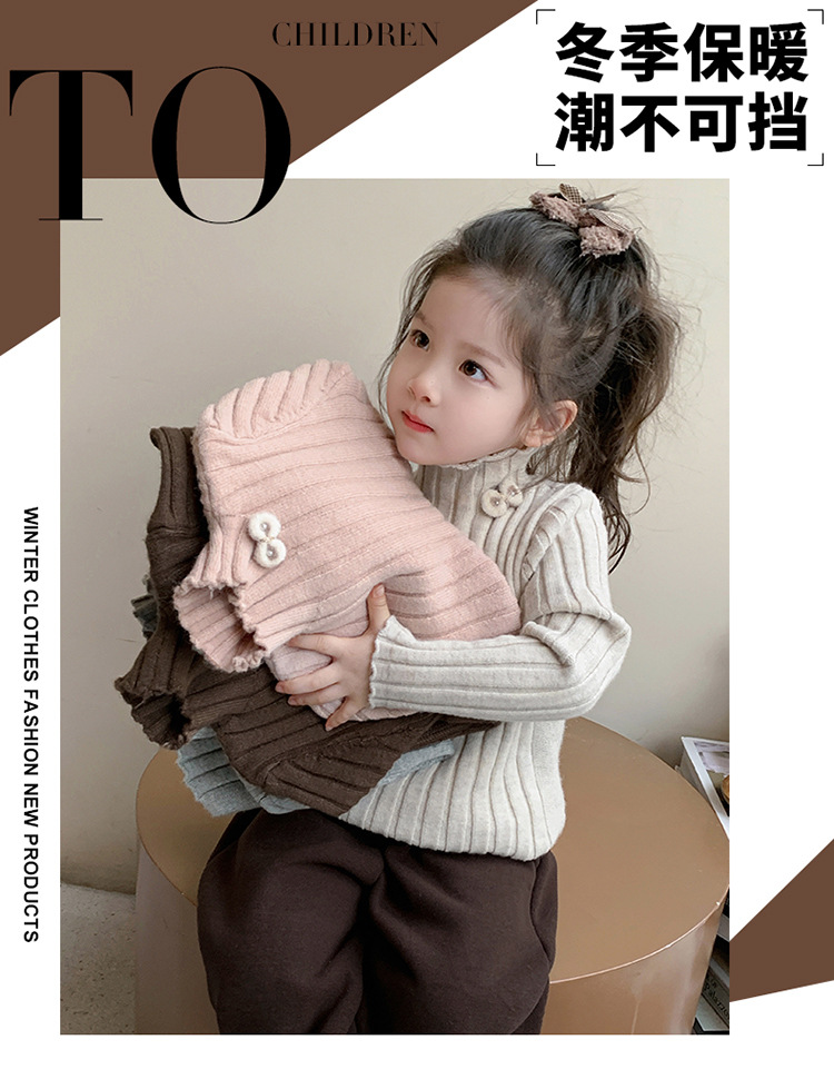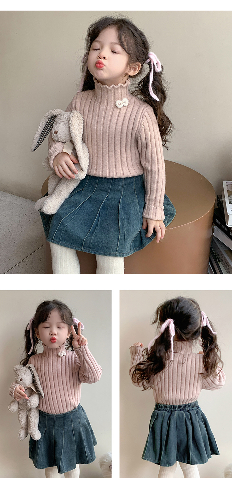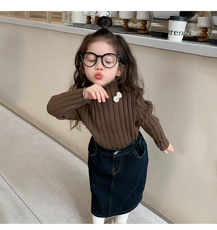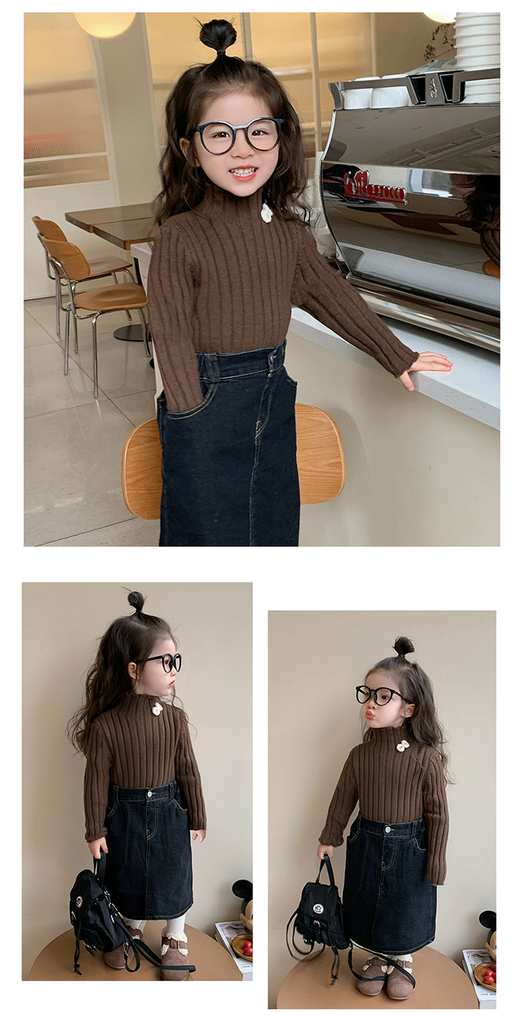 2025년 신상 한국 스타일 여아용 하이넥 스웨터 가을 겨울 신상 아동 패션 상의 유행 아동복스토어 가기