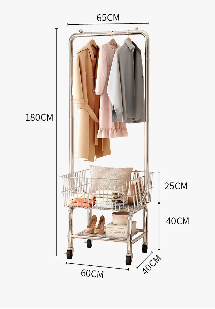 코트 랙 간단한 침실 바닥 서 움직일 수있는 옷걸이 스토리지 푸셔 프레임 의류 매장 디스플레이 랙 바구니