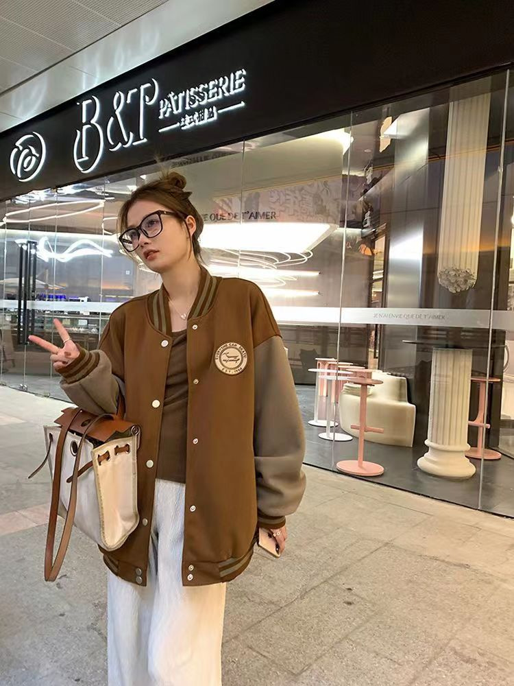 여자를위한 미국 ins 유행 야구 재킷 봄, 가을 2025 새로운 빈티지 학생 느슨한 재킷스토어 가기