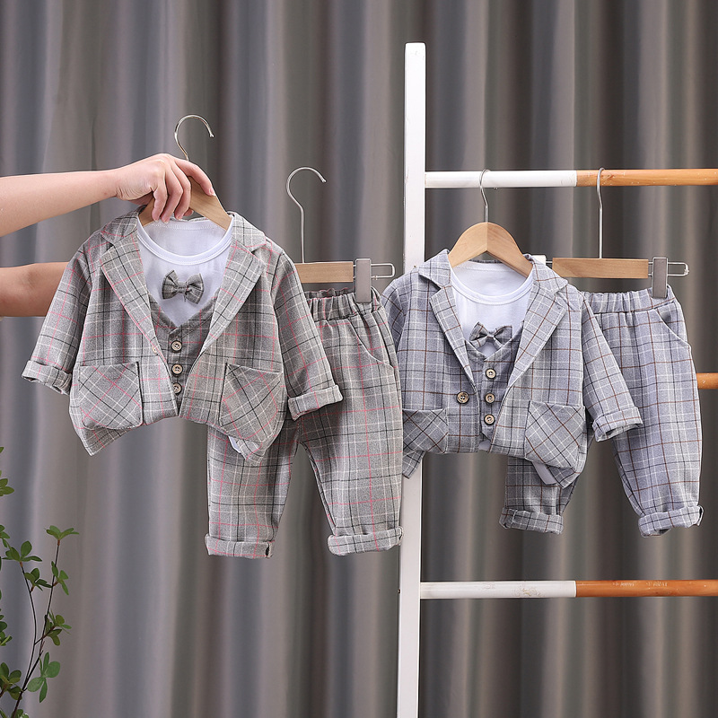어린이 세트 봄 수직 셔츠 긴팔 새 아기 잘 생긴 원피스 아기 3 피스 세트 어린이 가을 세트