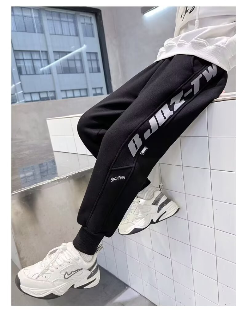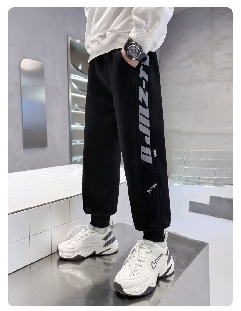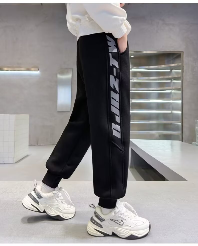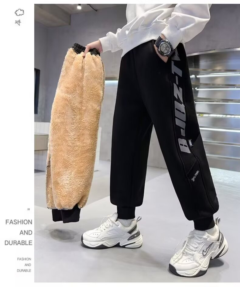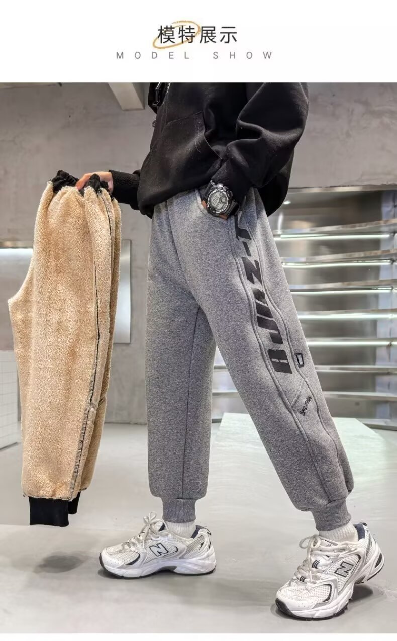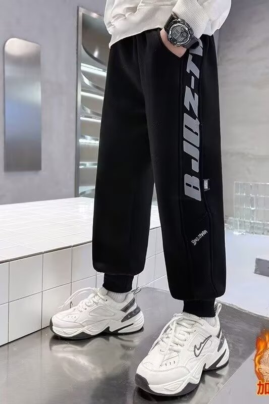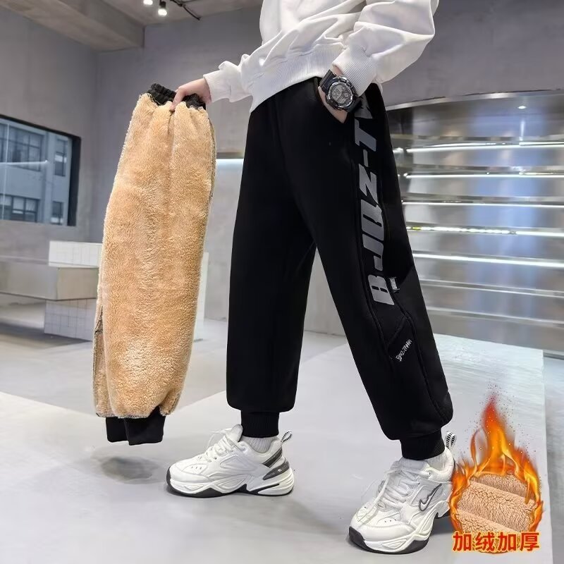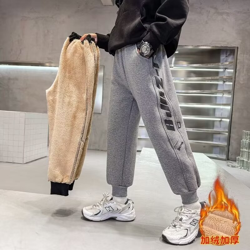 소년 바지 겨울 기모 두꺼운 스포츠 바지 원피스 벨벳 2023 년 가을과 겨울 새로운 어린이 겨울