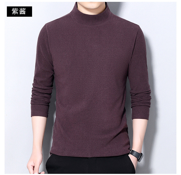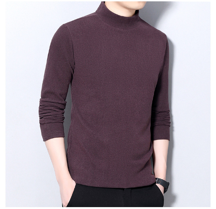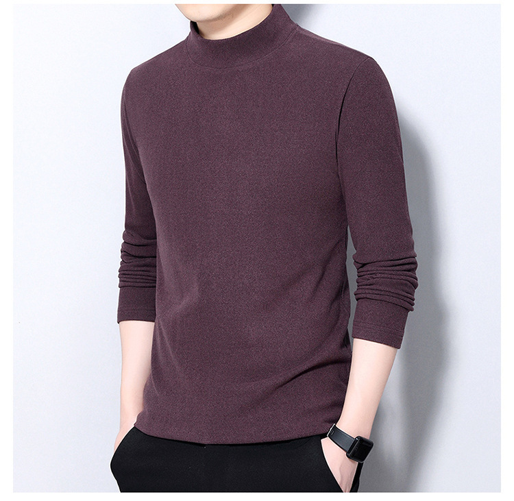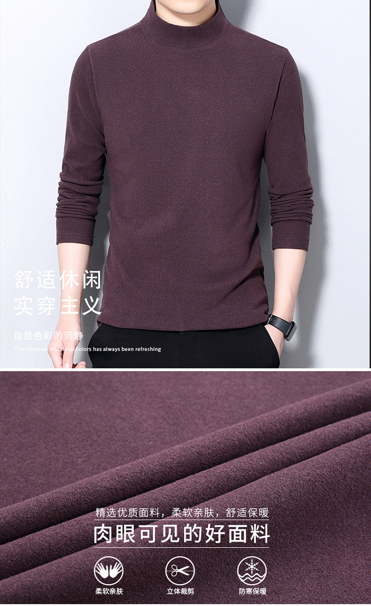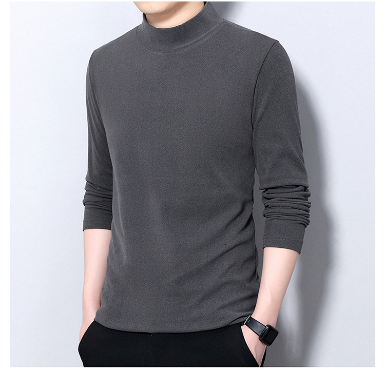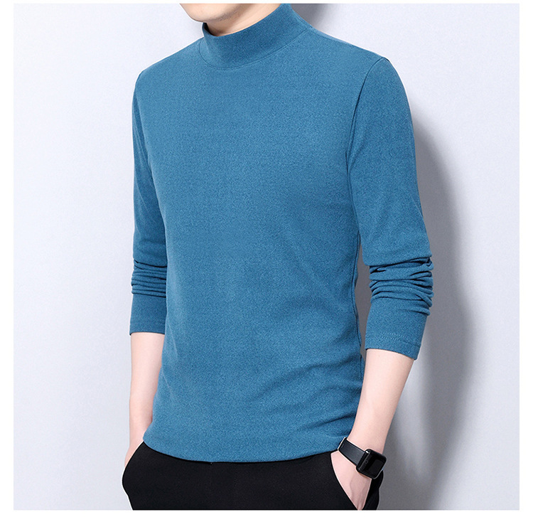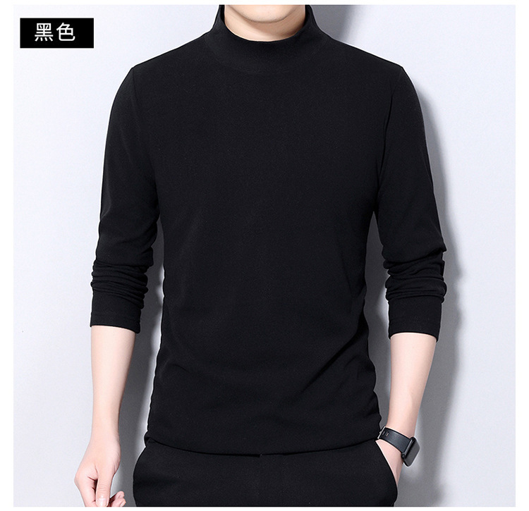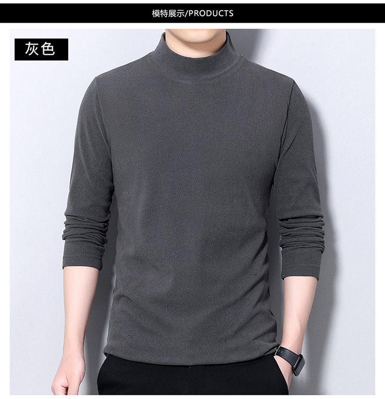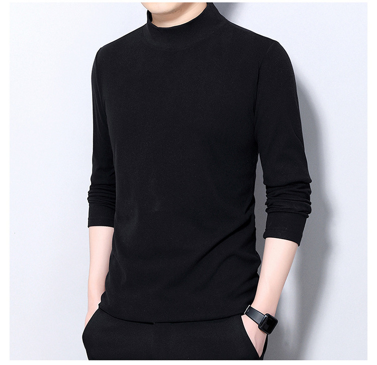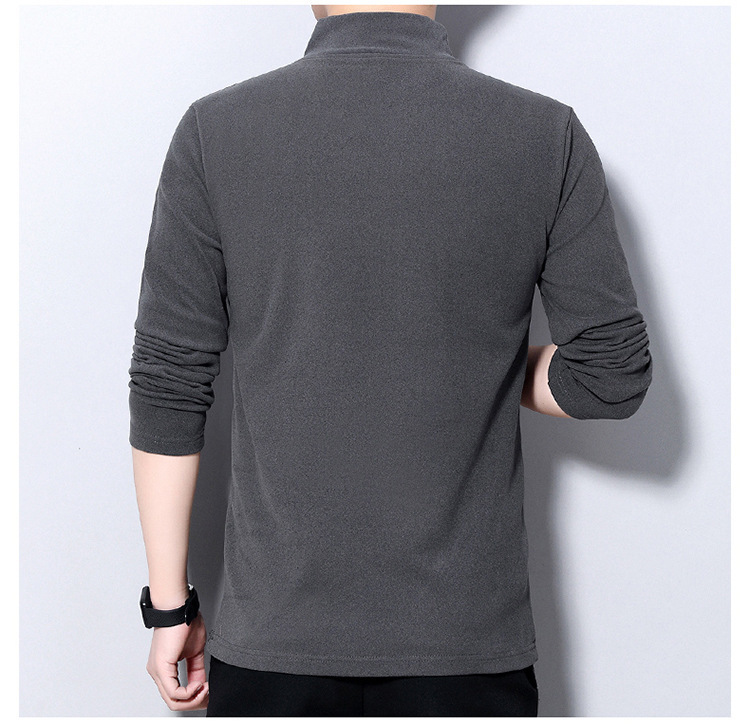 가을과 겨울의 양면 벨벳 세미 하이 칼라 바닥 셔츠 남성 긴팔 티셔츠 단색 따뜻한 청년