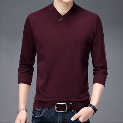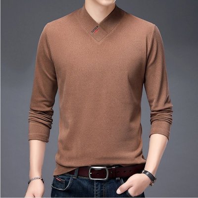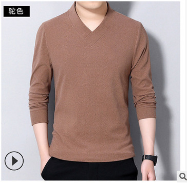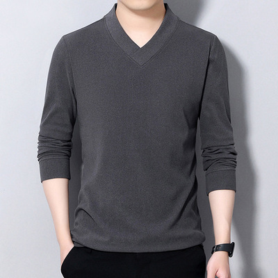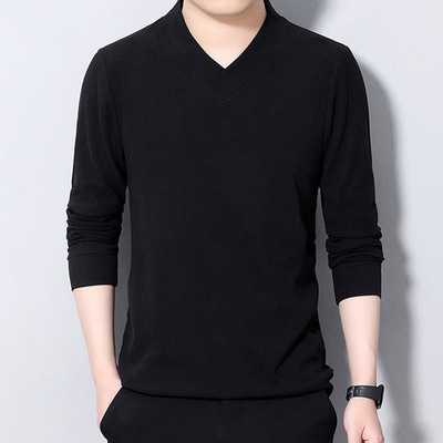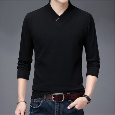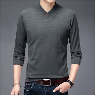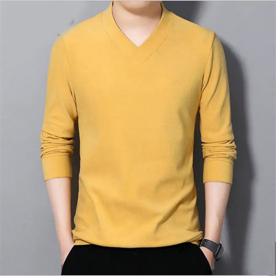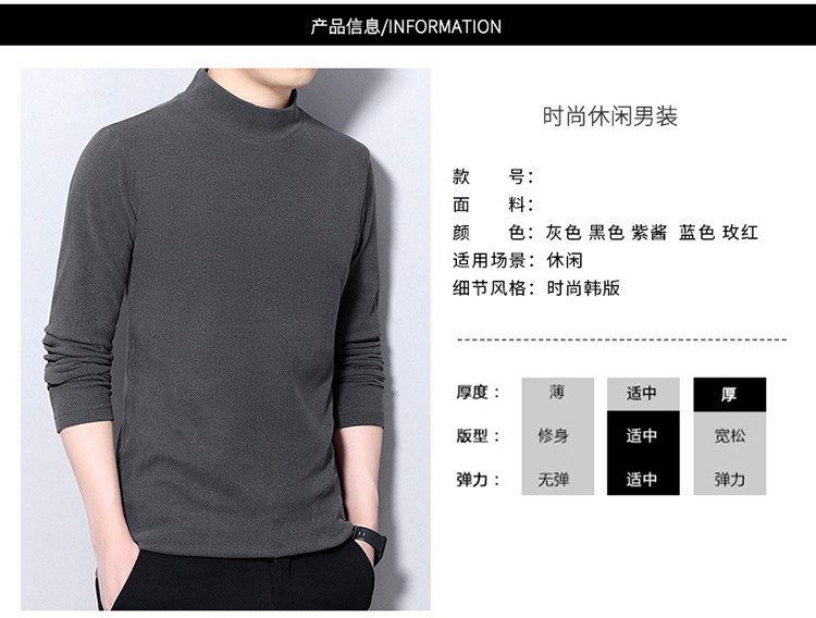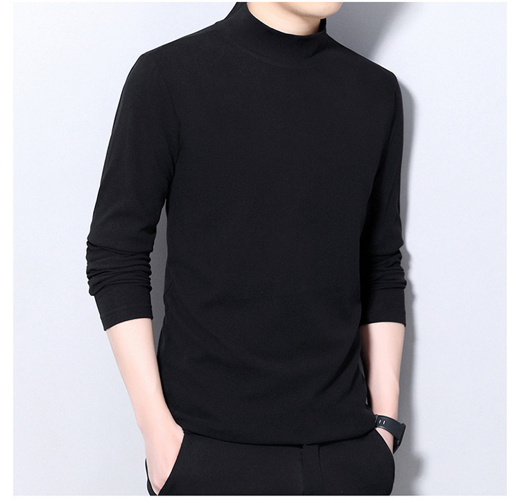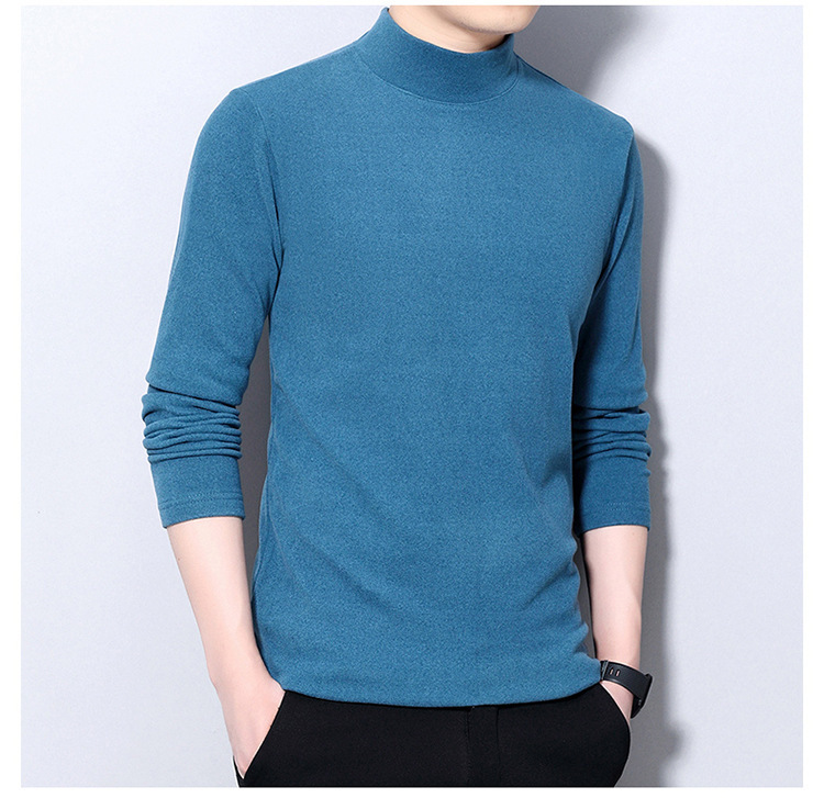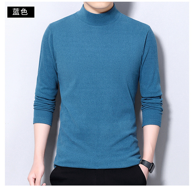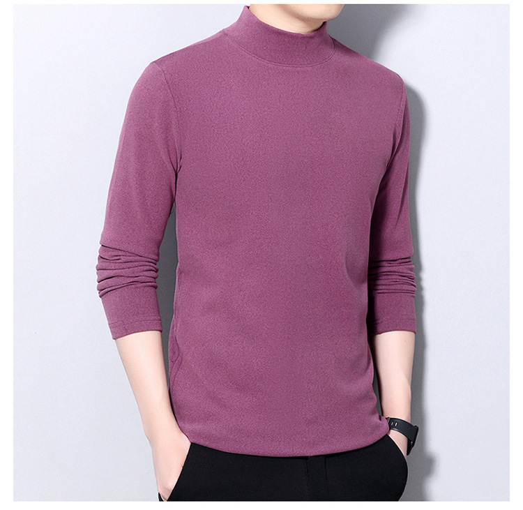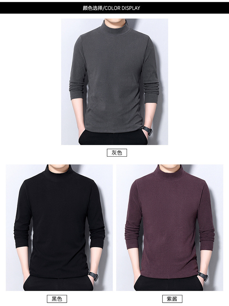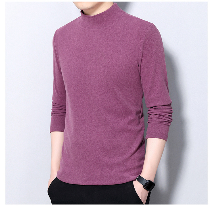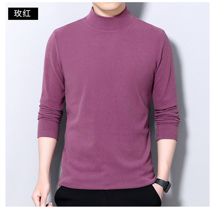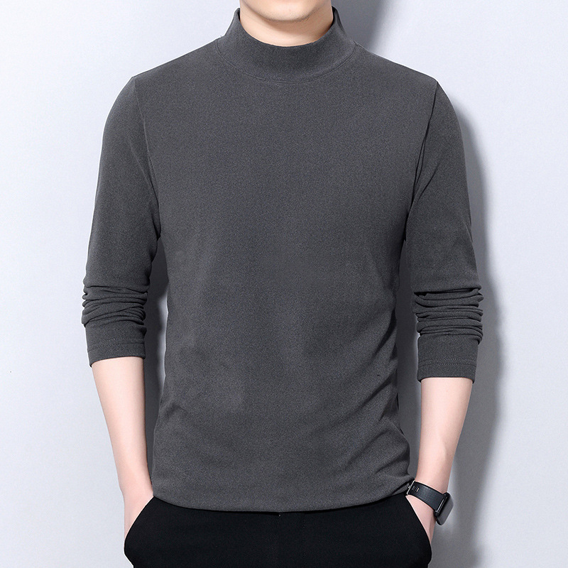 가을과 겨울의 양면 벨벳 세미 하이 칼라 바닥 셔츠 남성 긴팔 티셔츠 단색 따뜻한 청년