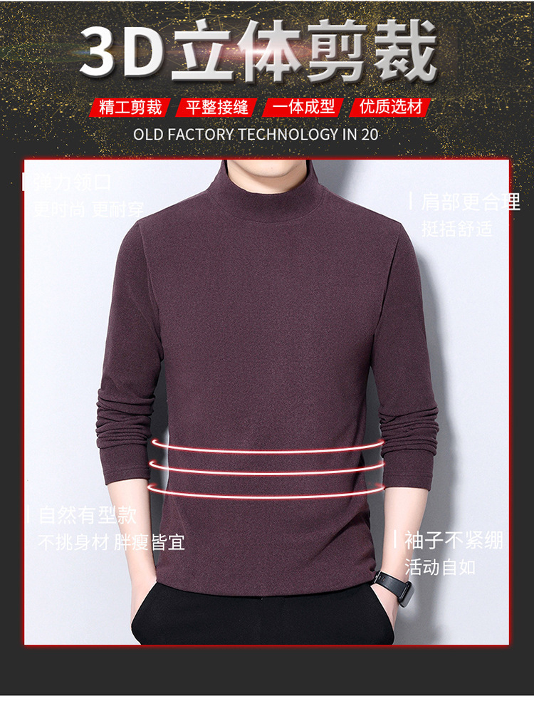 가을과 겨울의 양면 벨벳 세미 하이 칼라 바닥 셔츠 남성 긴팔 티셔츠 단색 따뜻한 청년스토어 가기
